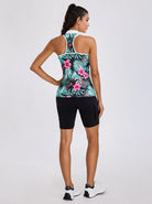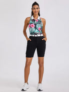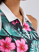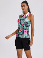 Pink Floral Quarter-zip Racerback Sleeveless Polo Shirt For Women