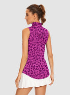 Purple Leopard Stand Collar V-neck Sleeveless Polo Shirt for Women