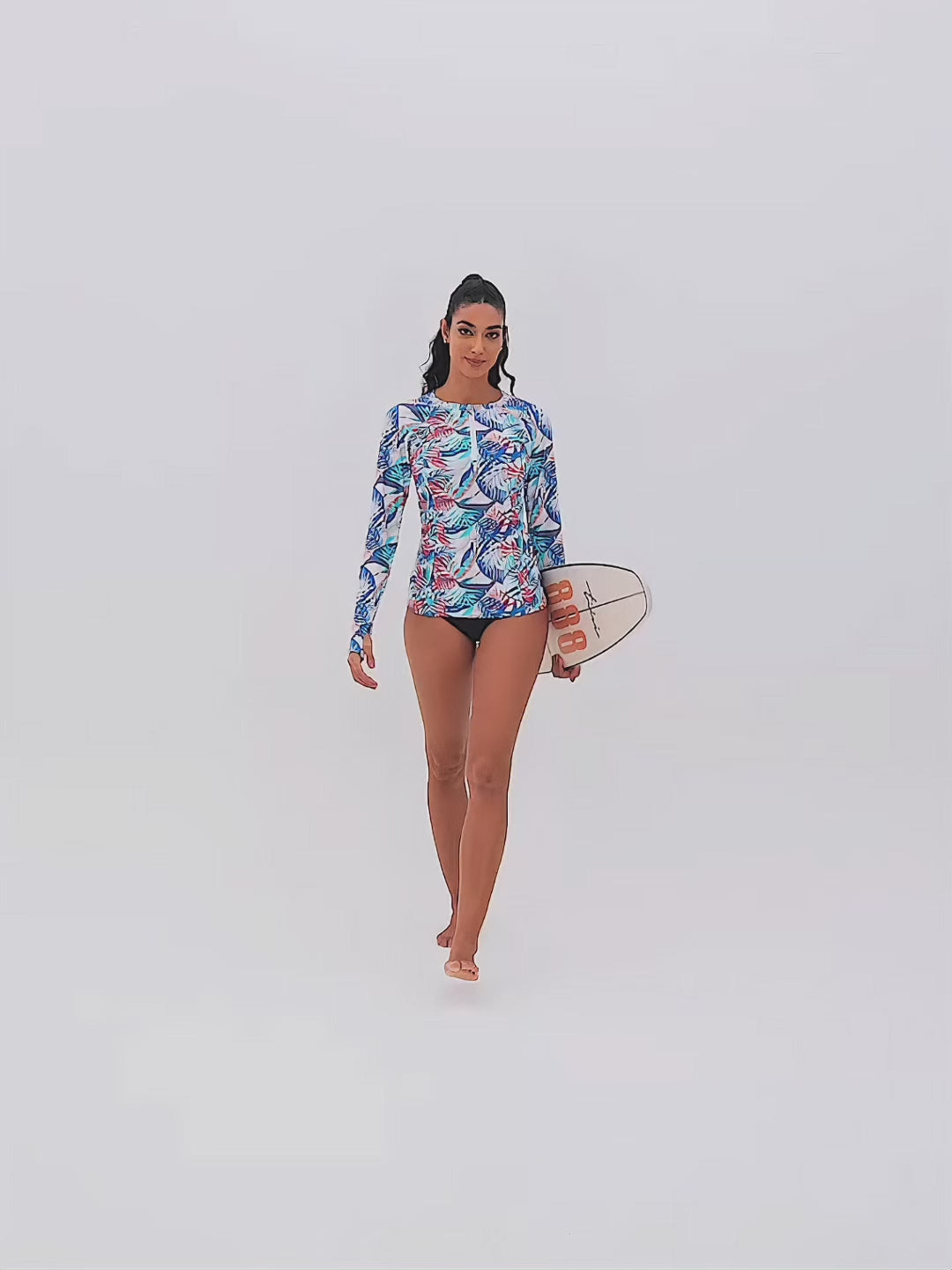 Protect yourself from the sun with our Blue and Green Leaves Quarter-zip Long-Sleeve Rash Guard. Its UPF50+ protection shields you from UVA and UVB rays, while the thumbhole and raglan sleeves offer comfortable freedom of movement. Also, its moisture-wicking and breathable fabric keeps you cool and dry. Stay comfortable and protected with this versatile rash guard.