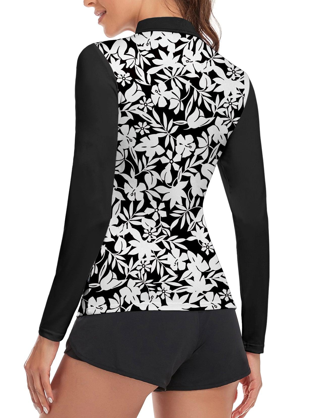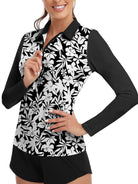 White Floral Long-sleeve Quarter-zip Polo for Ladies