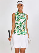 Elevate your golf style with our sleeveless polo shirt. Featuring a trendy green coconut and pineapple print, this versatile top pairs perfectly with your favorite golf skirt or shorts. The moisture-wicking fabric ensures maximum comfort and performance, whether you're on the course or on the beach.