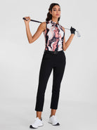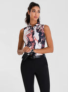 Orange Marble Button-down Sleeveless Golf Polo Shirt for Women