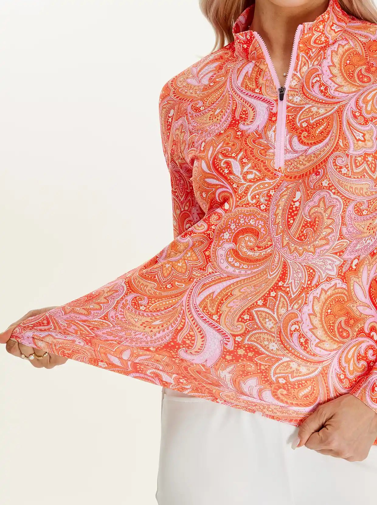 You can pair a women's golf shirt with a variety of bottoms, depending on the occasion. Golf skirts, shorts or tailored trousers are perfect for a day on the course. For a sporty yet stylish look, pair a printed golf shirt with a short skirt or slim-fitting golf pants. Accessories like a sunhat or visor not only complete the look but also protect you from the sun, while a light jacket or pullover can keep you warm without sacrificing style.