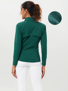 Dark Green Stand-collar Long-sleeve Jacket with Mesh Vent Inlay