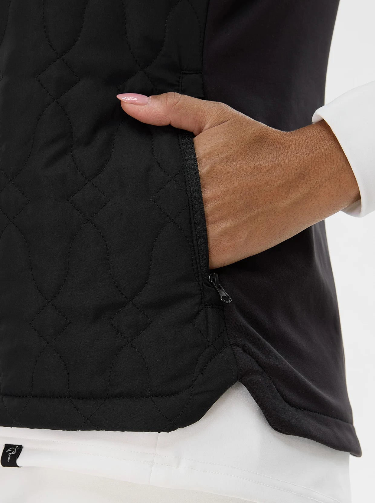 Unparalleled comfort meets versatile performance in our new Hybrid Vest. This fleece vest features a sophisticated hybrid construction, using distinct fabrics front and back for optimized function. The front shell utilizes fluffy quilted insulation for core warmth and a lightweight, soft feel. The interior features a comfortable, stretchy fleece lining for flexibility and added heat retention.