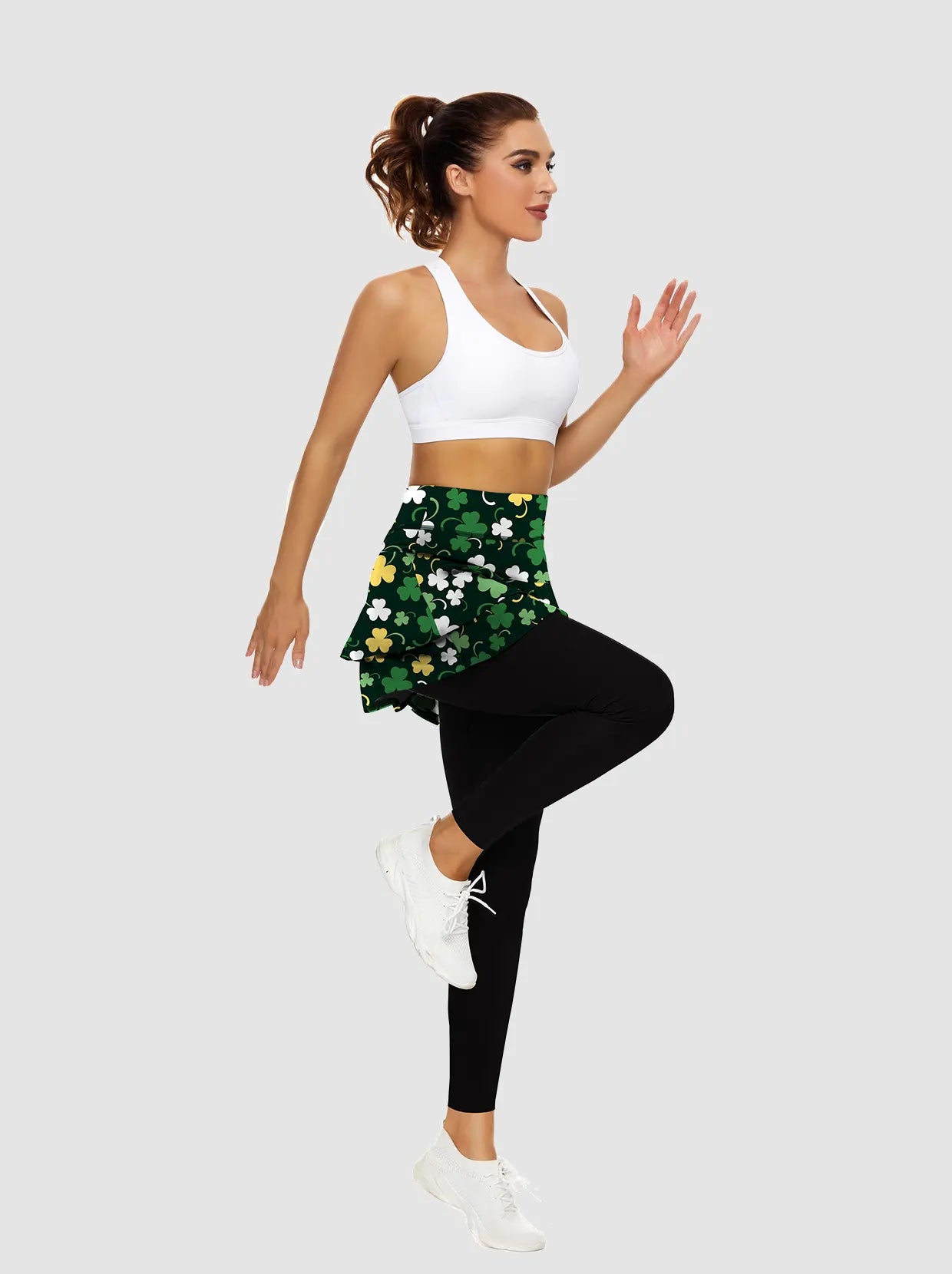 Stay active and stylish with our versatile Green Clover Double-layered Skirted Leggings! These skirted leggings are designed with a soft, breathable, and stretchy double layer for maximum comfort and functionality. The side pockets provide convenient storage for your essentials, while the wide flat waistband ensures a comfortable and secure fit. Perfect for outdoor activities and daily wear.