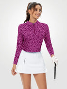 Purple Leopard Quarter-zip Long-sleeve Polo Shirt for Women