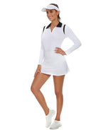 White Patchwork V-Collar Long Sleeve Golf Polo for Women