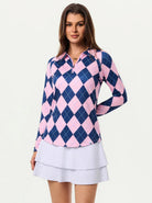 Pink and Blue Argyle Quarter-zip Long-sleeve Golf Polo Shirt