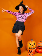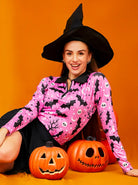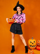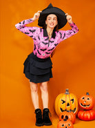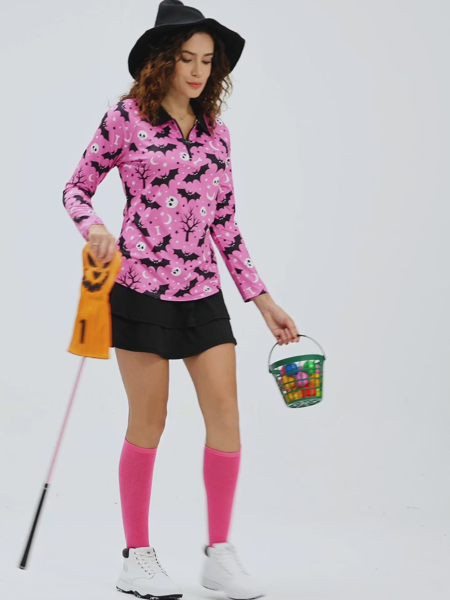 Halloween Pink Bats Quarter-zip Long-sleeve Polo Shirt for Women