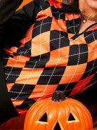 Halloween Pumpkin and Black Color Argyle Long-sleeve Polo Shirt for Women