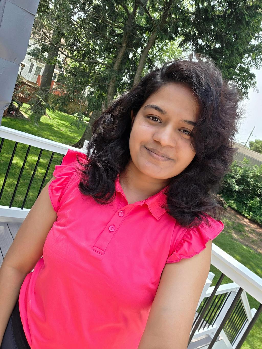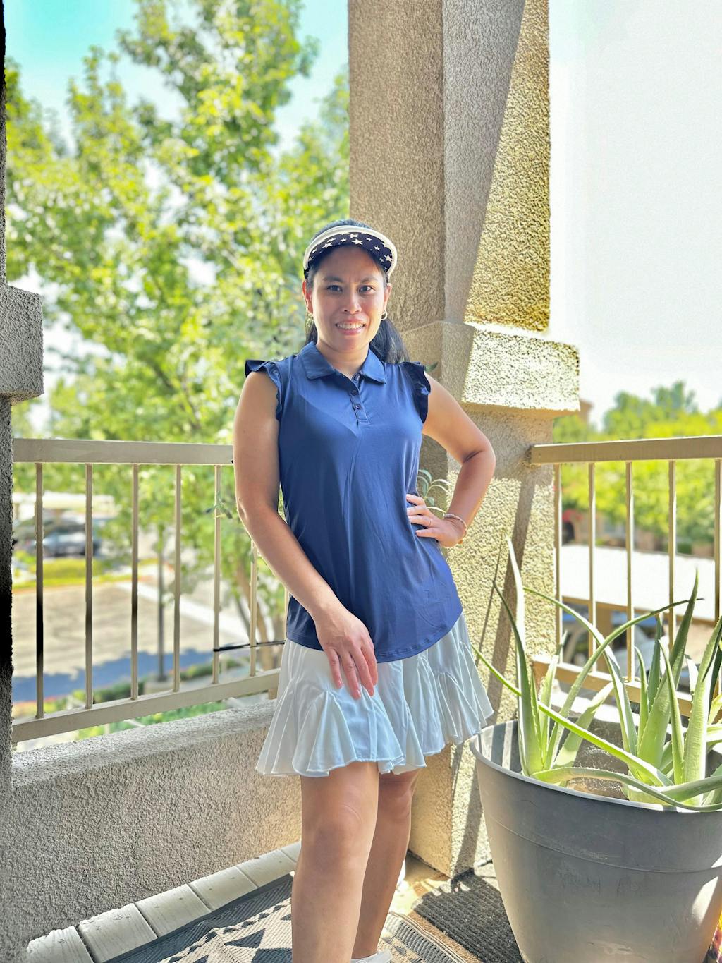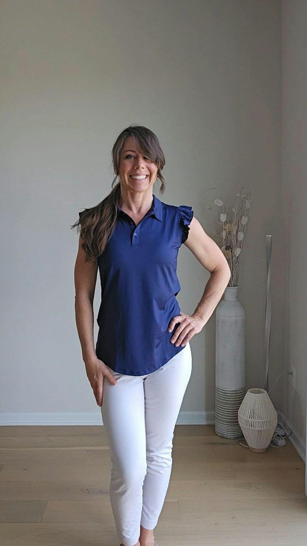 Button-Placket Ruffled Sleeveless Polo Shirt