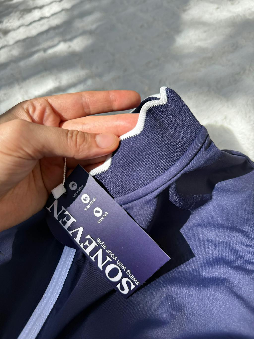 Distinctive Collar Details - Stand out with our unique collar design, featuring a daring ruffled edge and a convenient quarter-zip for added style. Don't miss the striking white contrast that adds an extra touch of boldness to this piece.