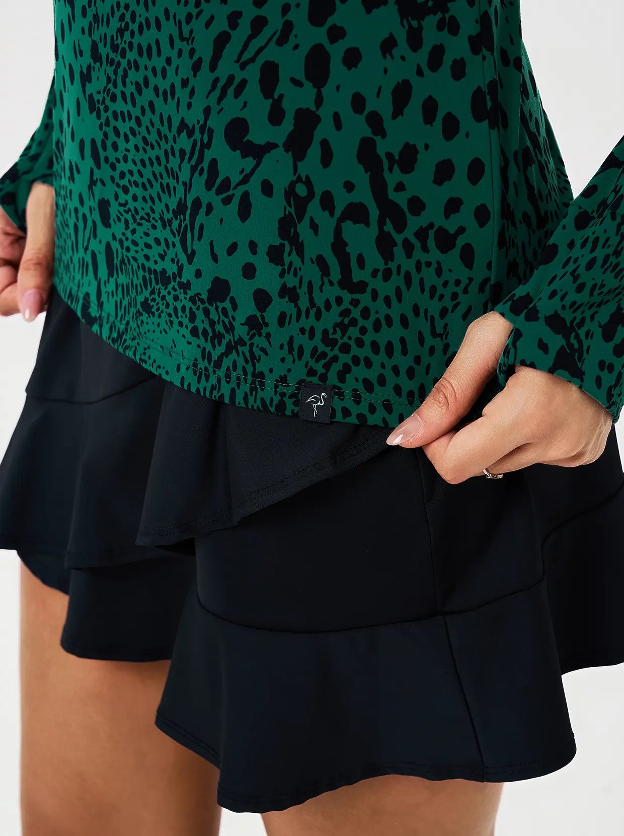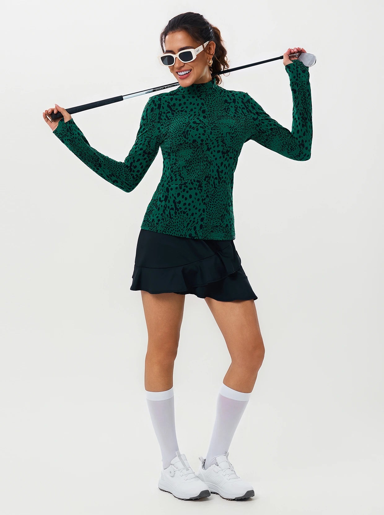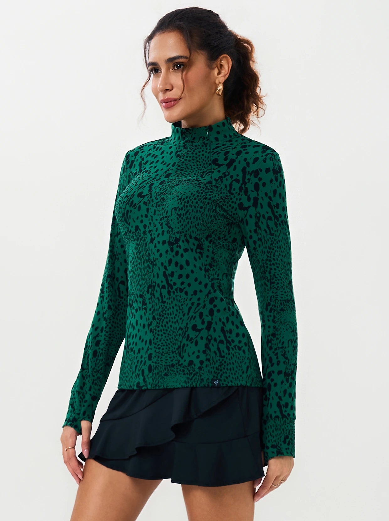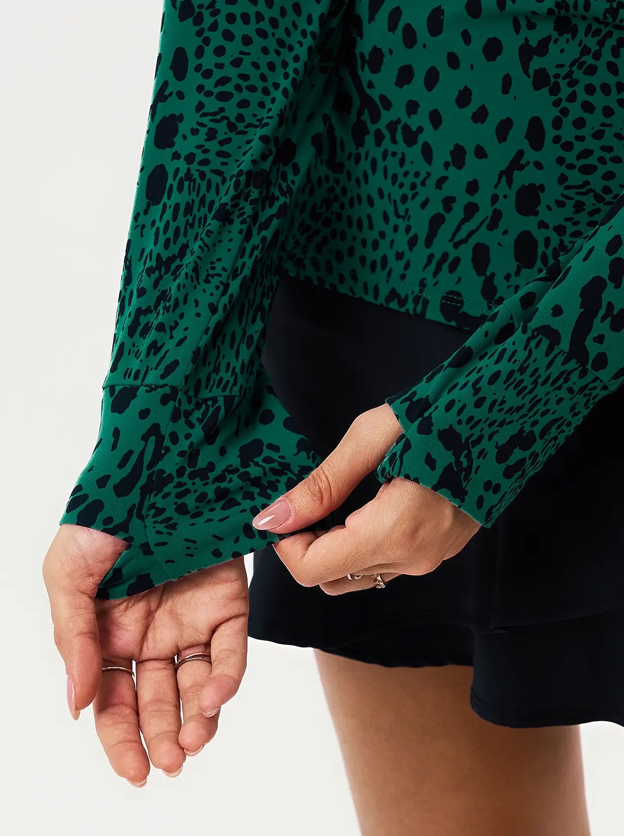 A powerful statement from our Fall for Classics Collection, this long-sleeve shirt features a distinctive leopard print on a rich dark green base. Complete with thumbholes for built-in warmth and a highly breathable, moisture-wicking fabric, this piece is a perfect blend of bold style and peak performance.