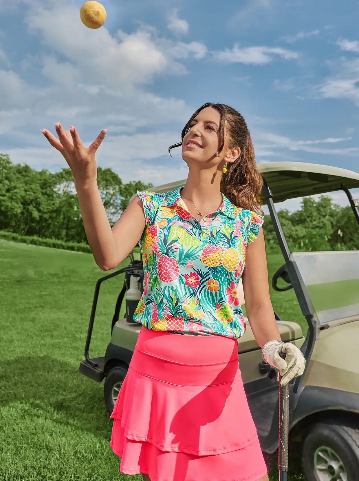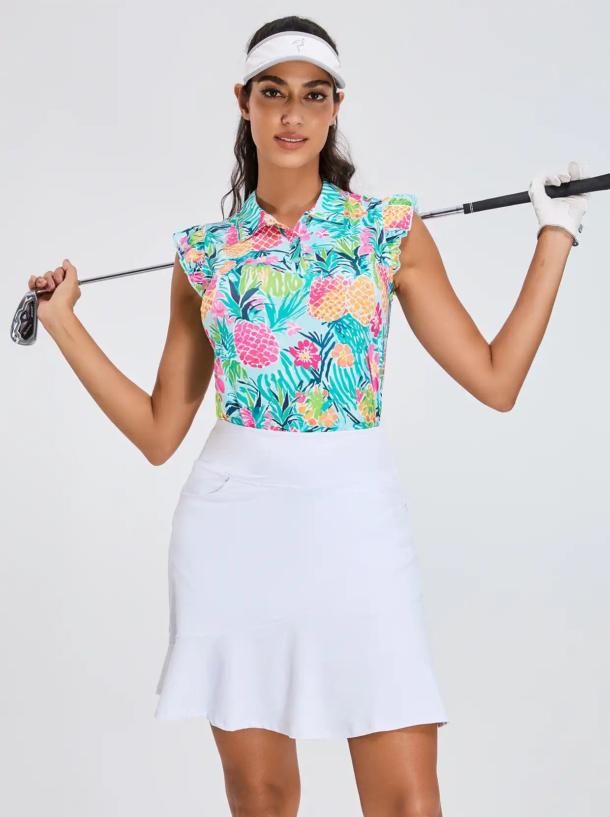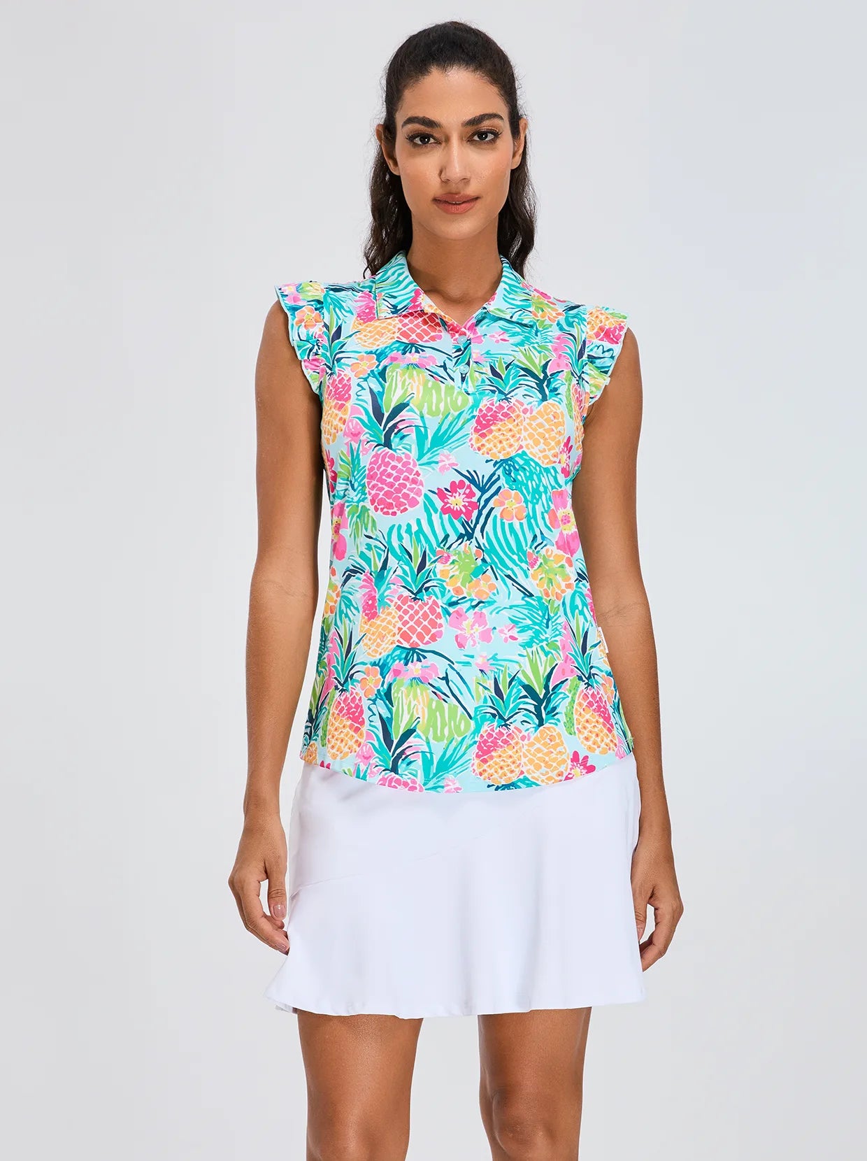 Pineapple Ruffled Sleeveless Button-placket Polo Shirt