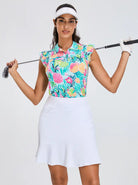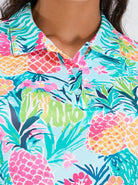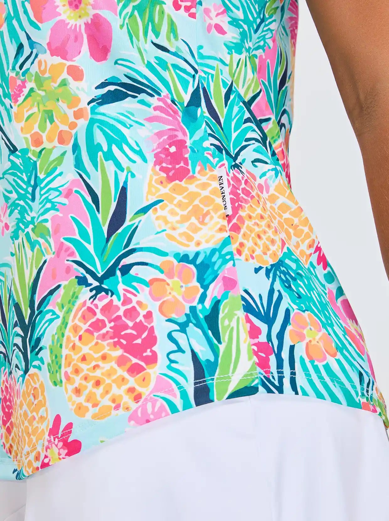 Take your style game to the next level with our Pineapple Sleeveless Button-Placket Polo! The unique pineapple pattern adds a touch of fun and personality, while the quick-dry and moisture-wicking materials keep you cool and comfortable during any activity. With a ruffled sleeve and curved hem, our stretchy and durable polo shirt is perfect for sports like tennis and pickleball, as well as everyday wear. Don't miss out on this versatile and bold addition to your wardrobe!