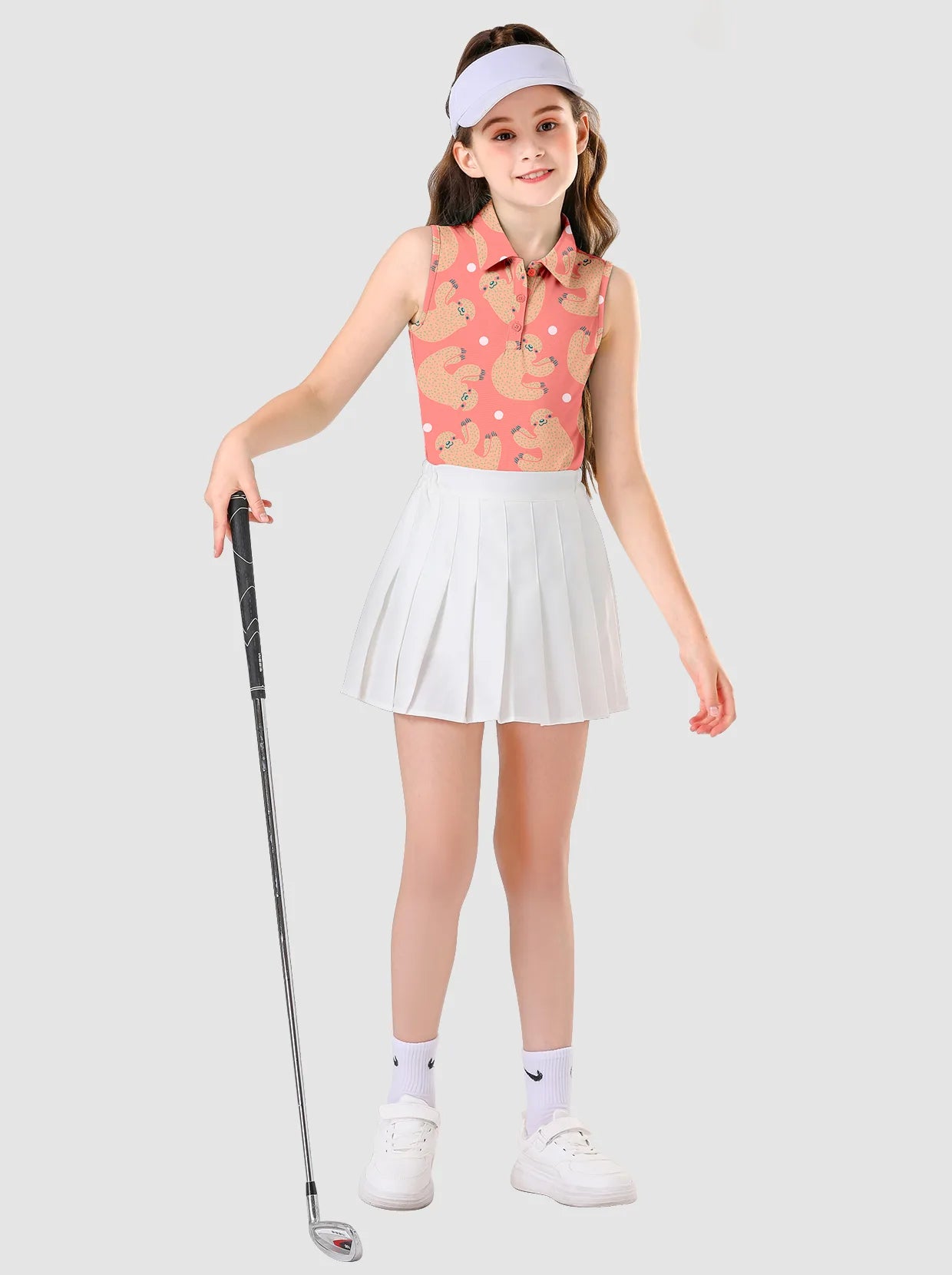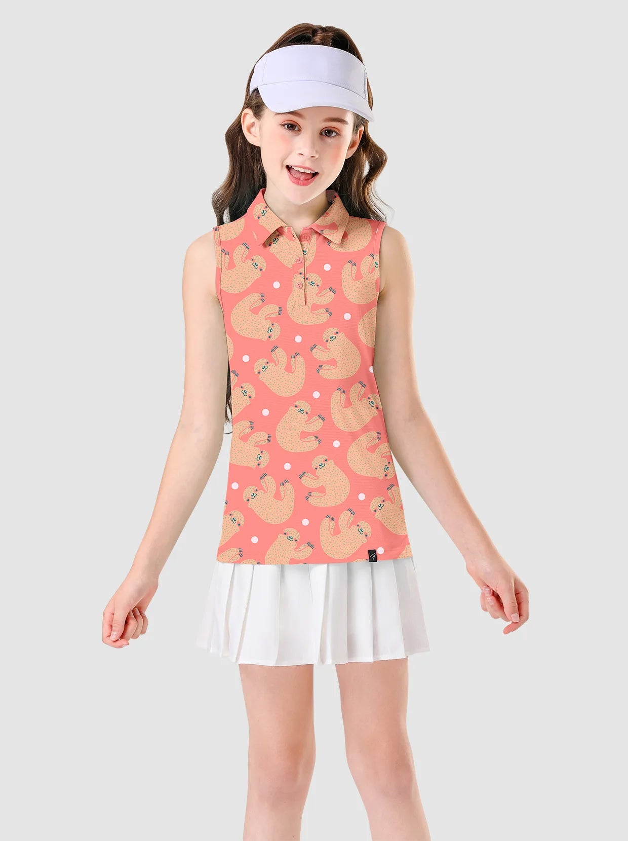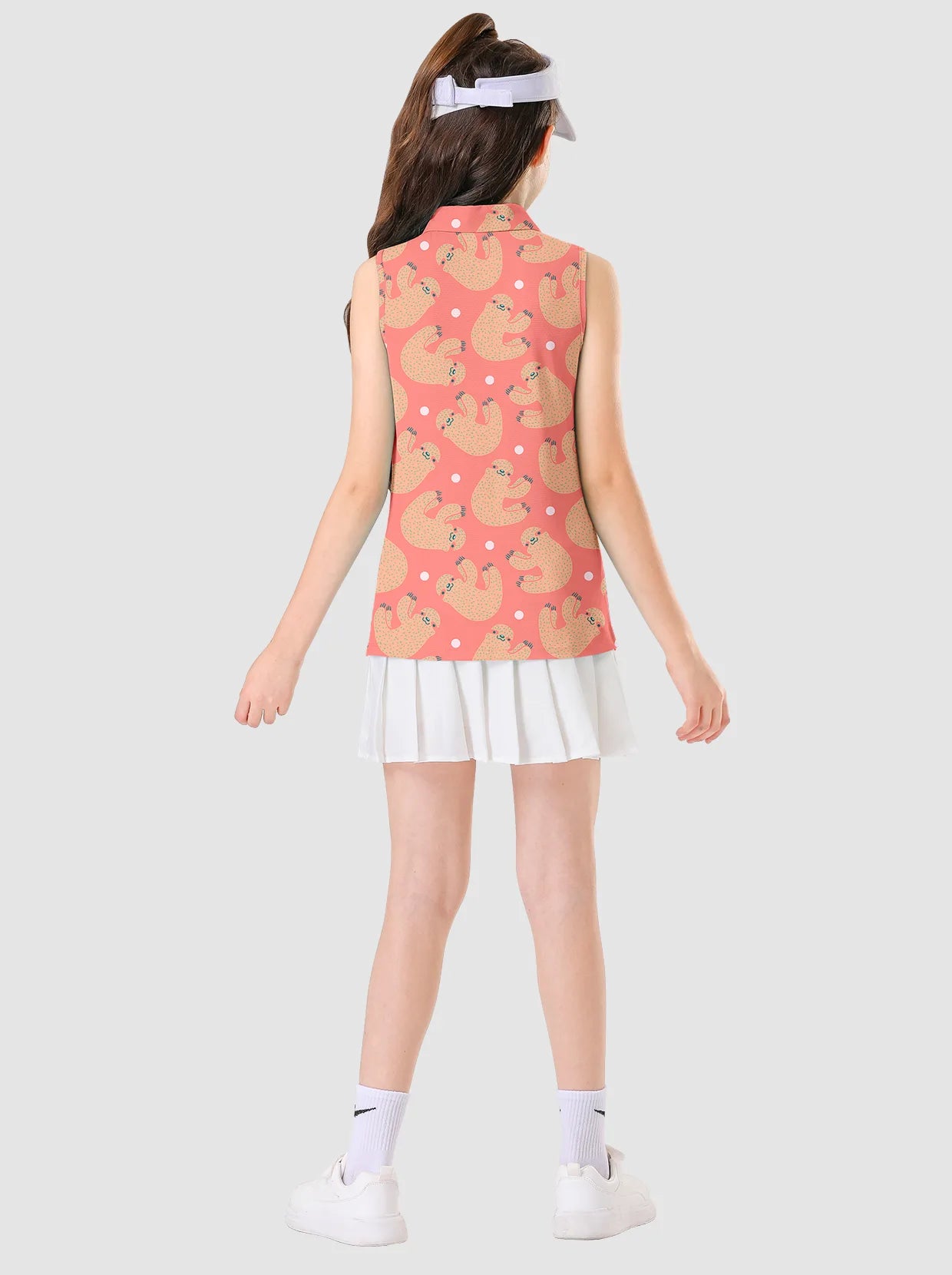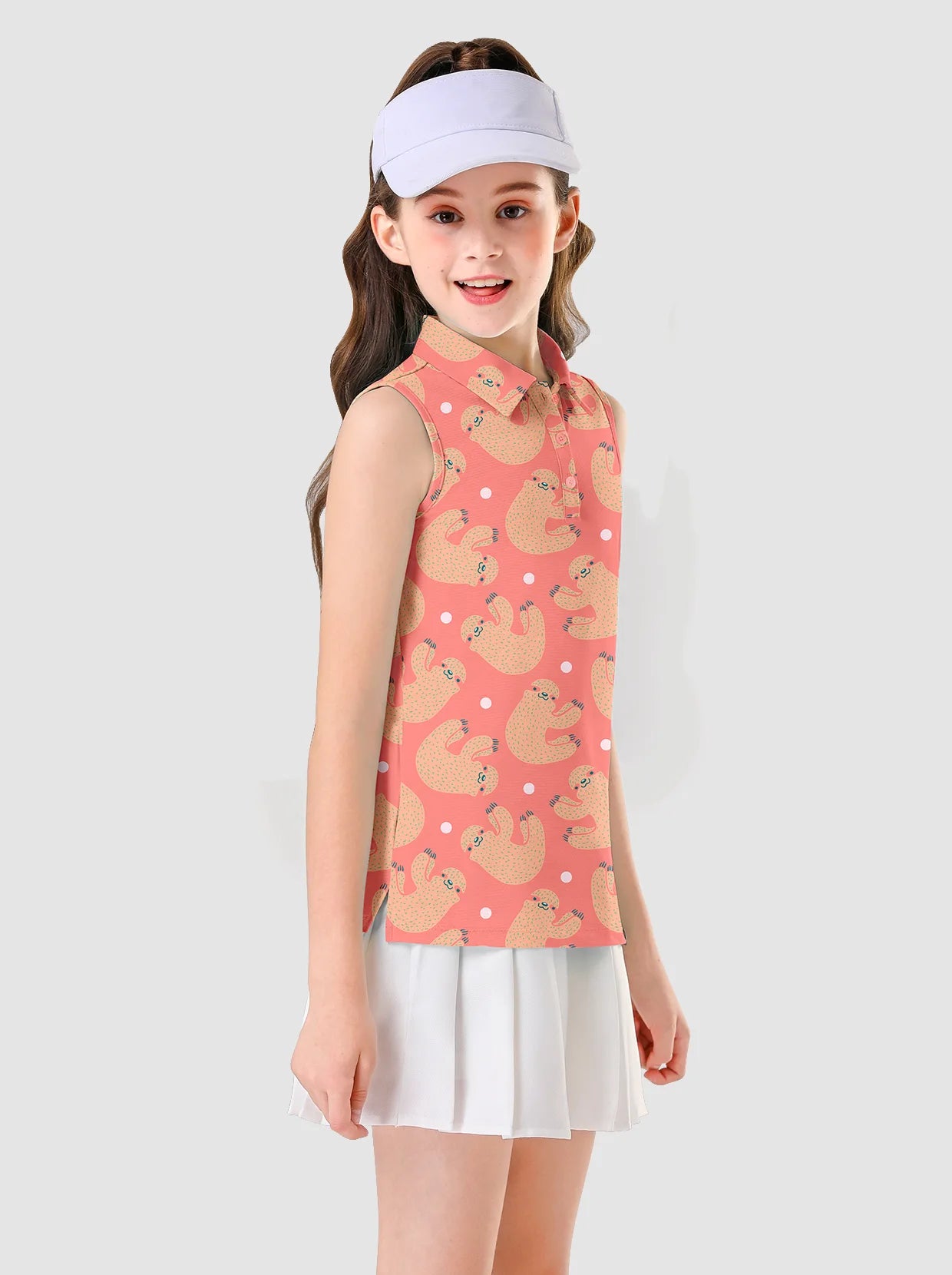 Pink Sloth Button-placket Sleeveless Polo Shirt for Girls