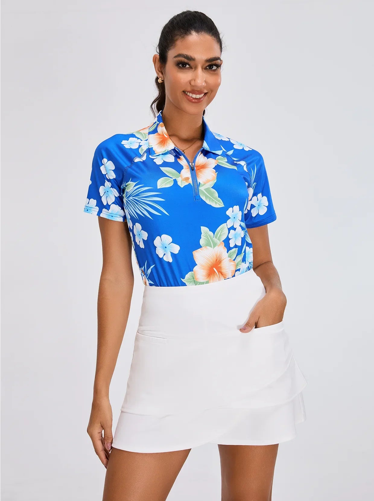 Embrace the beauty of the golf course with our stunning Blue Floral Short-Sleeve Golf Shirt. This elegant polo features a delicate floral pattern on a soft, breathable fabric. The raglan sleeves design ensures freedom of movement, while moisture-wicking fabrics keep you comfortable all day long. Perfect for both on and off the course, the classic collar and comfortable fit make it a versatile addition to your wardrobe.