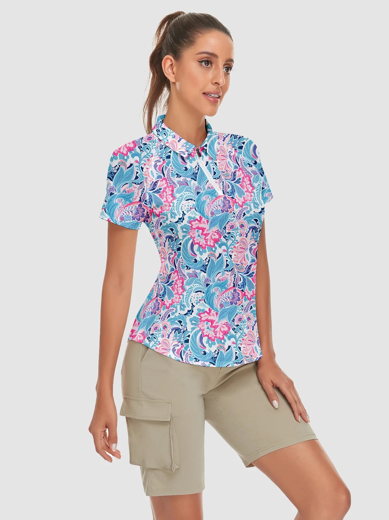 Stretchy Short Sleeves Quarter-Zip Golf Polo Tops