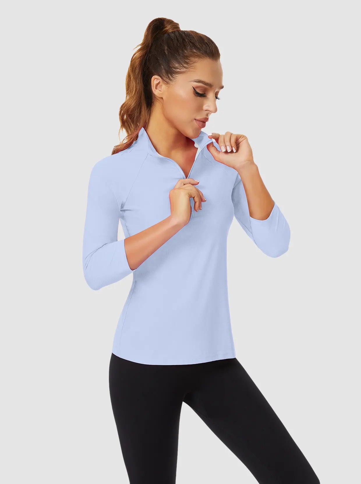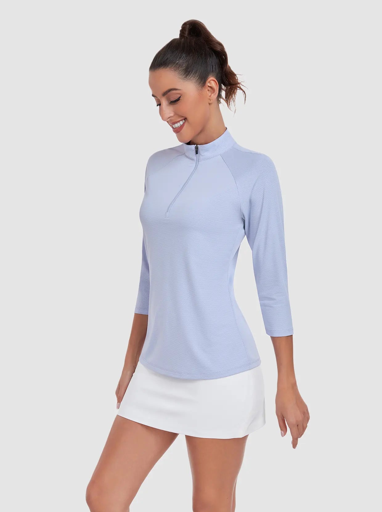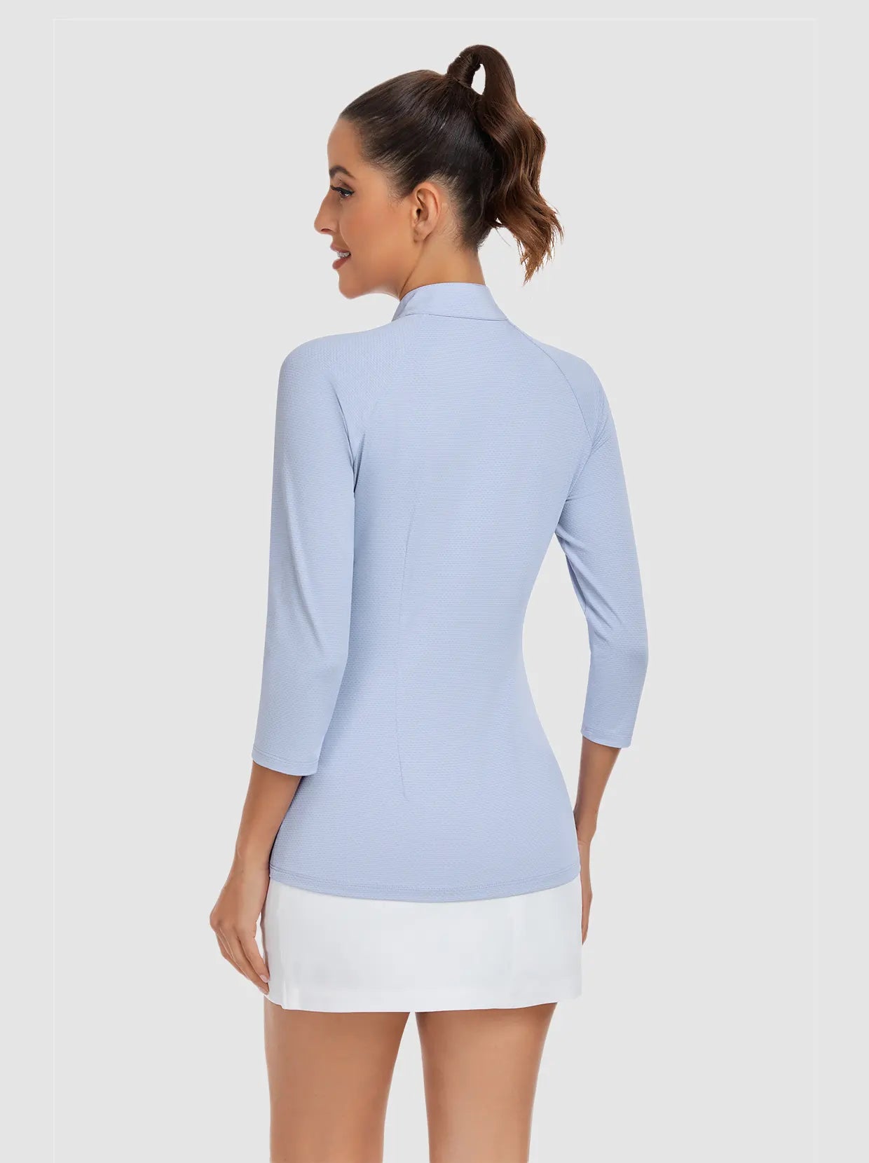 Light Blue Quarter-zip 3/4 Sleeve Shirt For Women