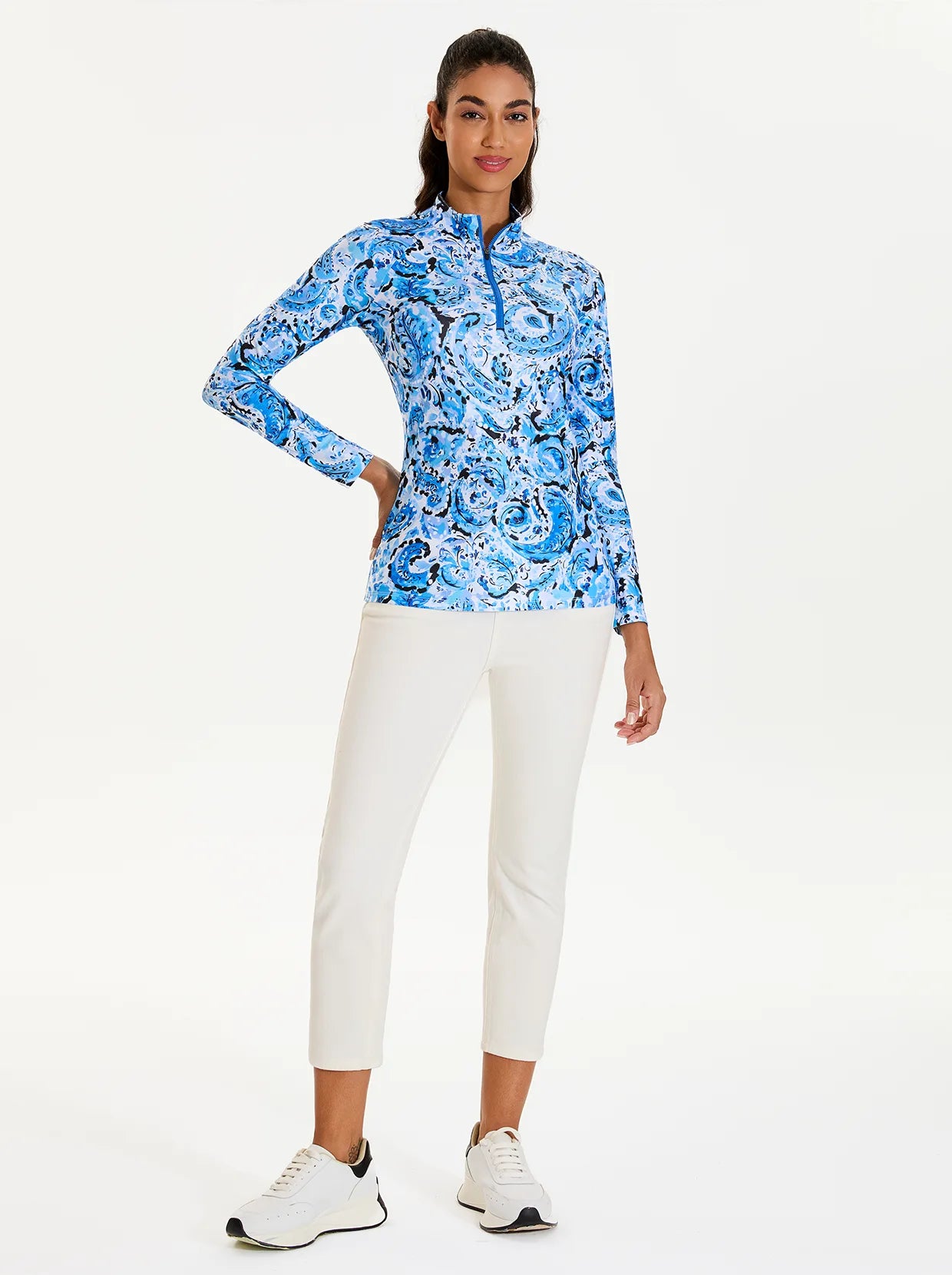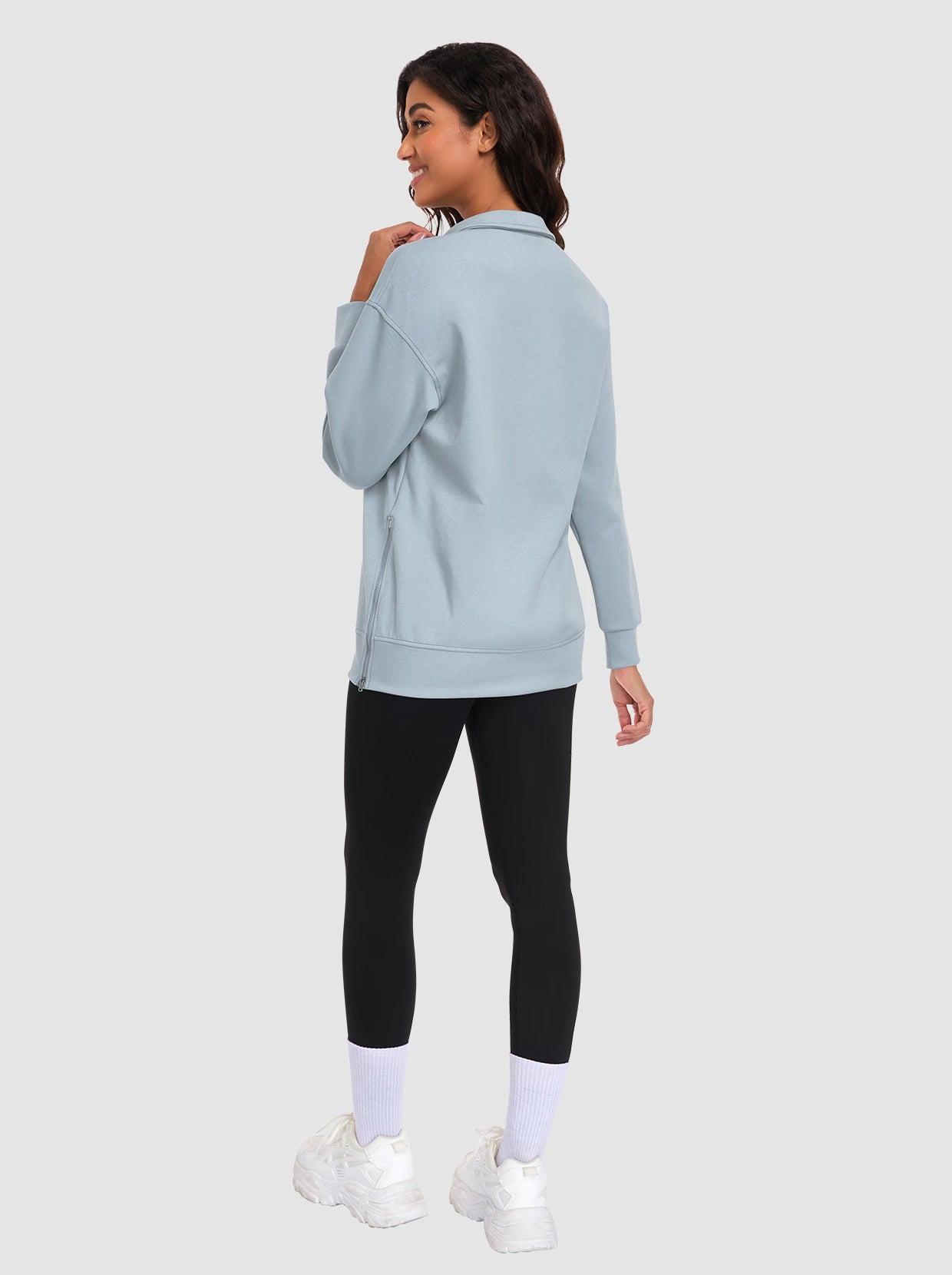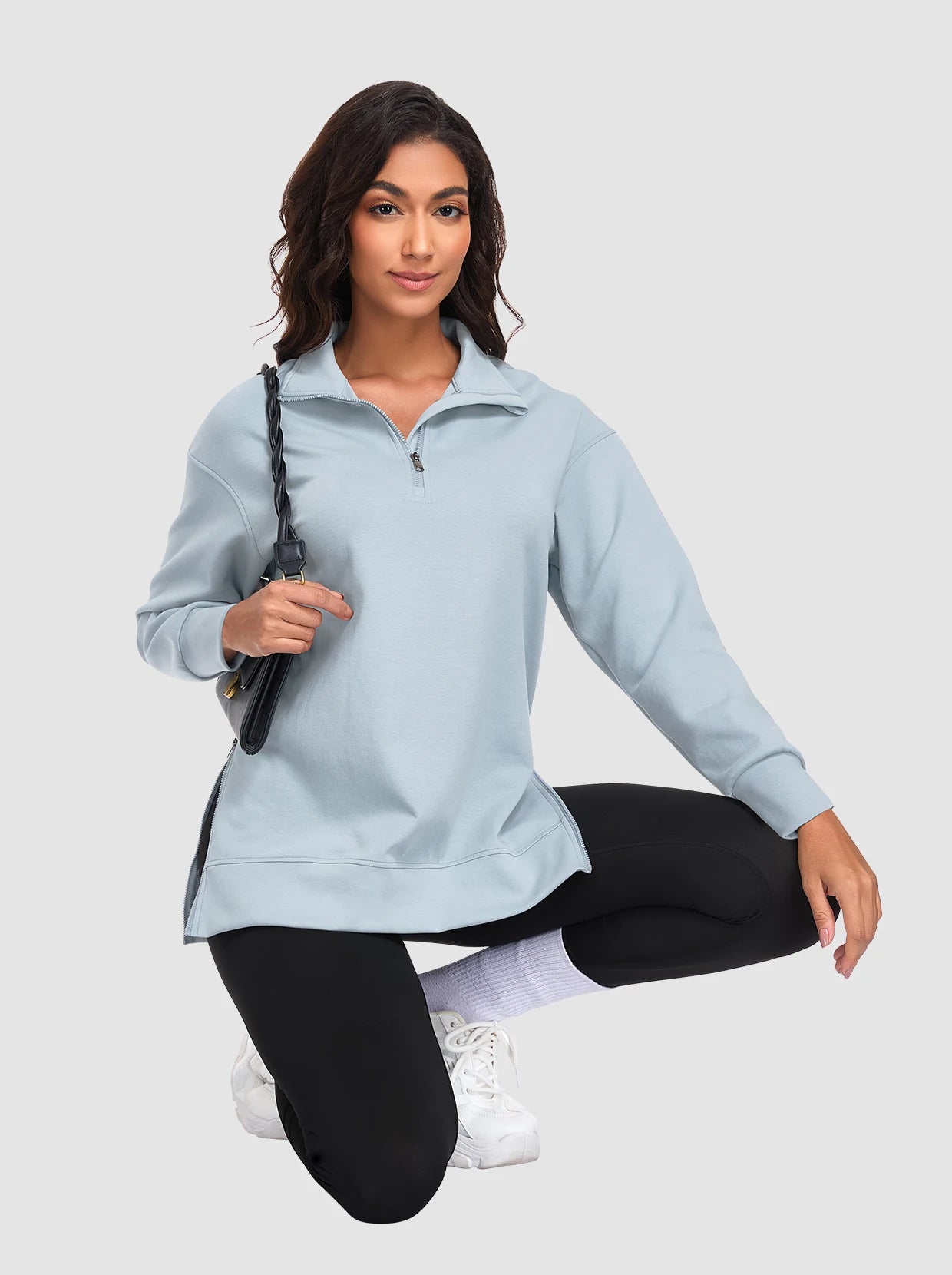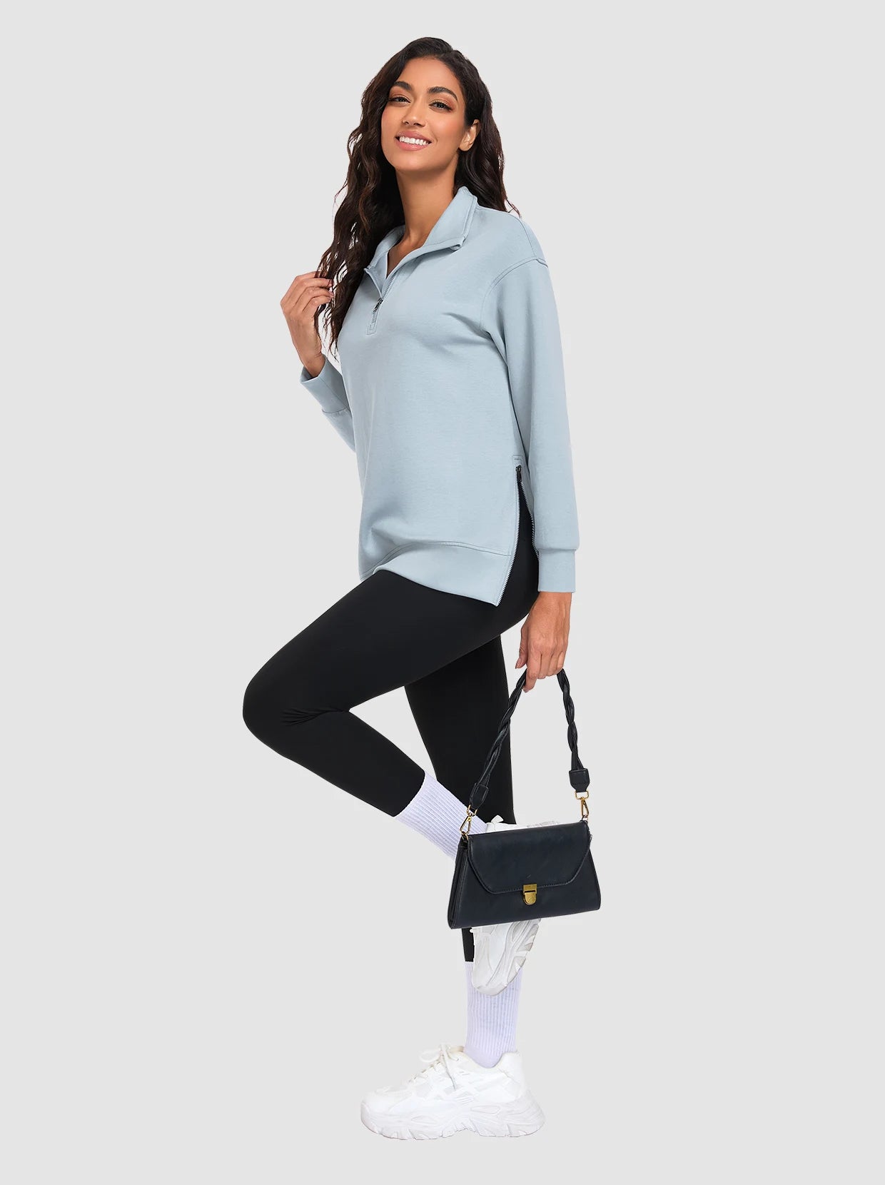 Light Blue Quarter-zip 3/4 Sleeve Shirt For Women