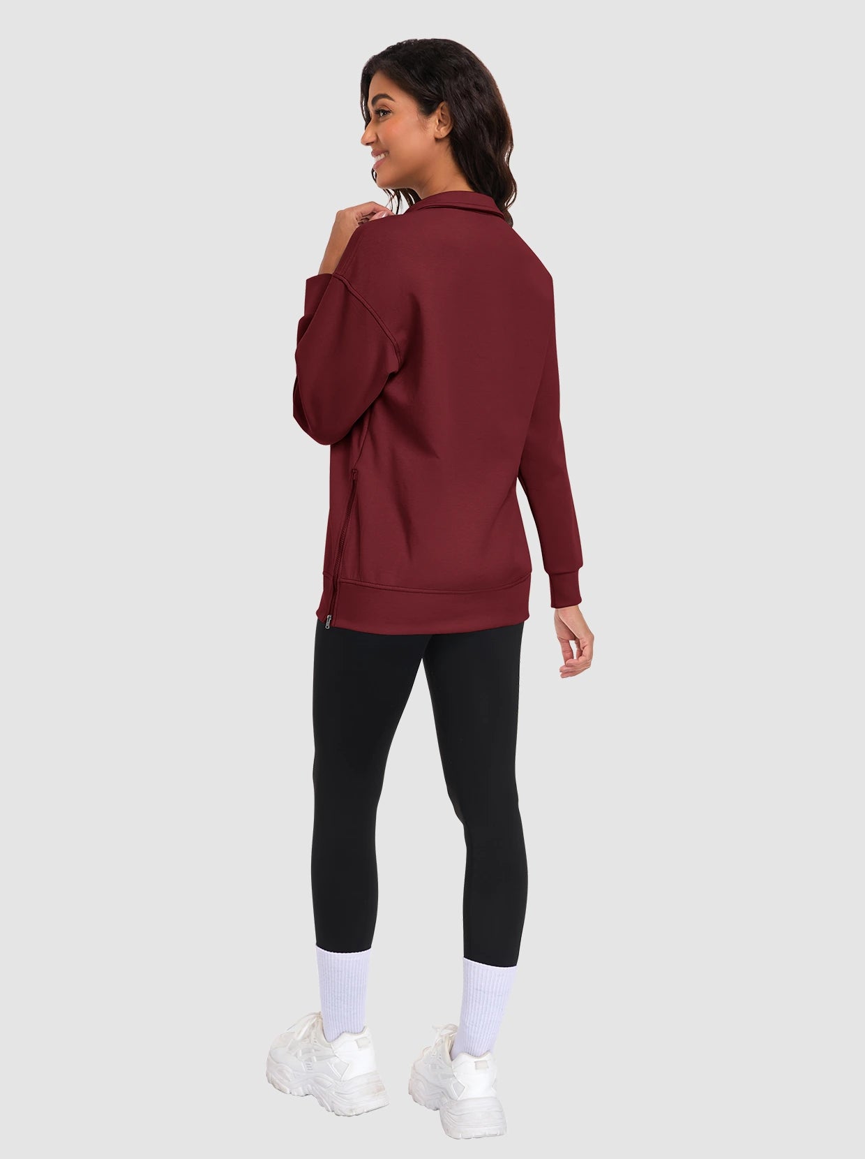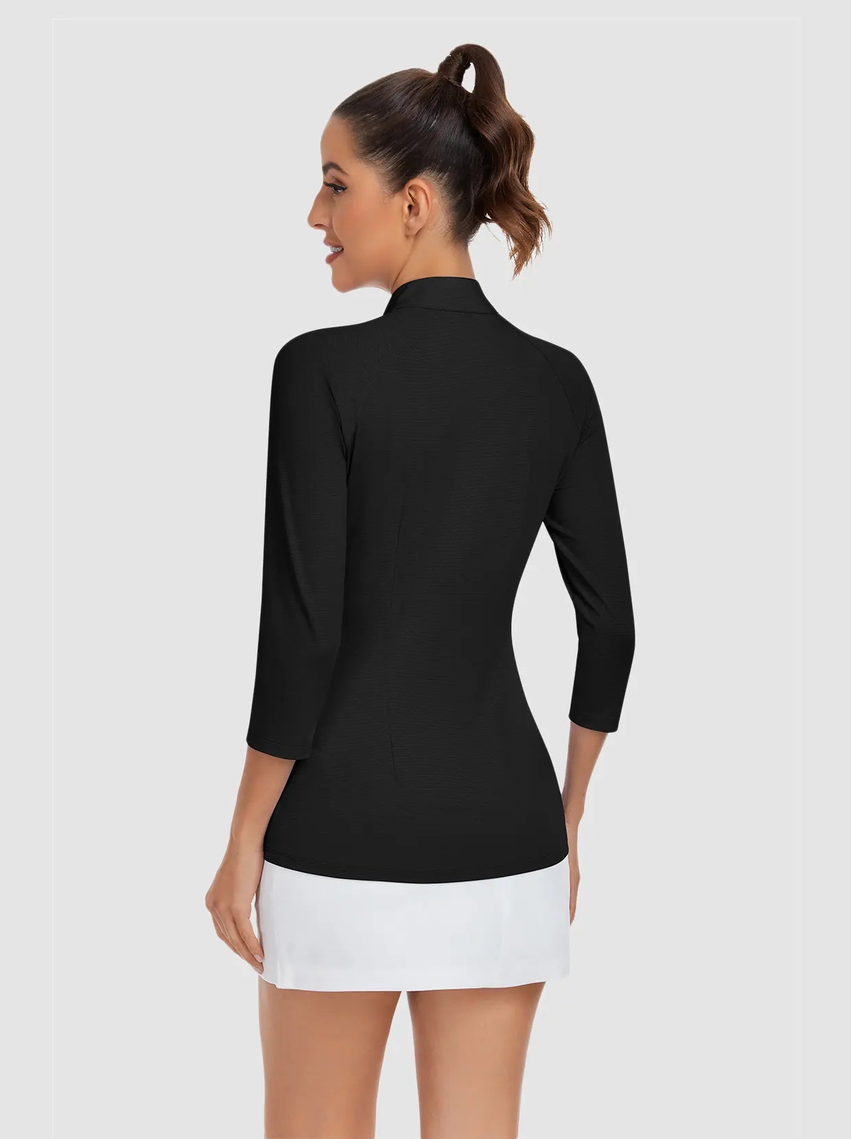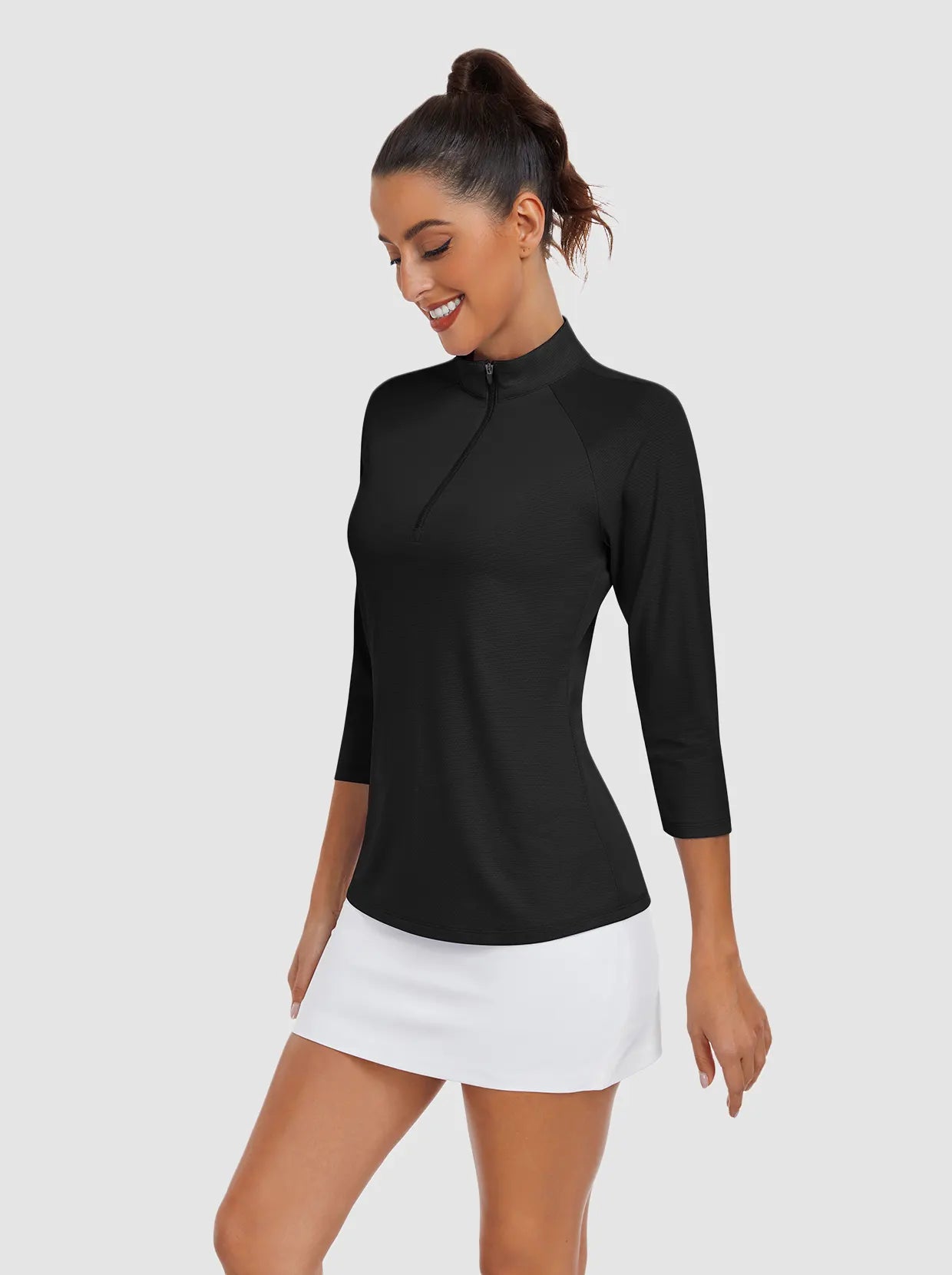 Basic Quarter-zip 3/4 Sleeve Shirt For Women