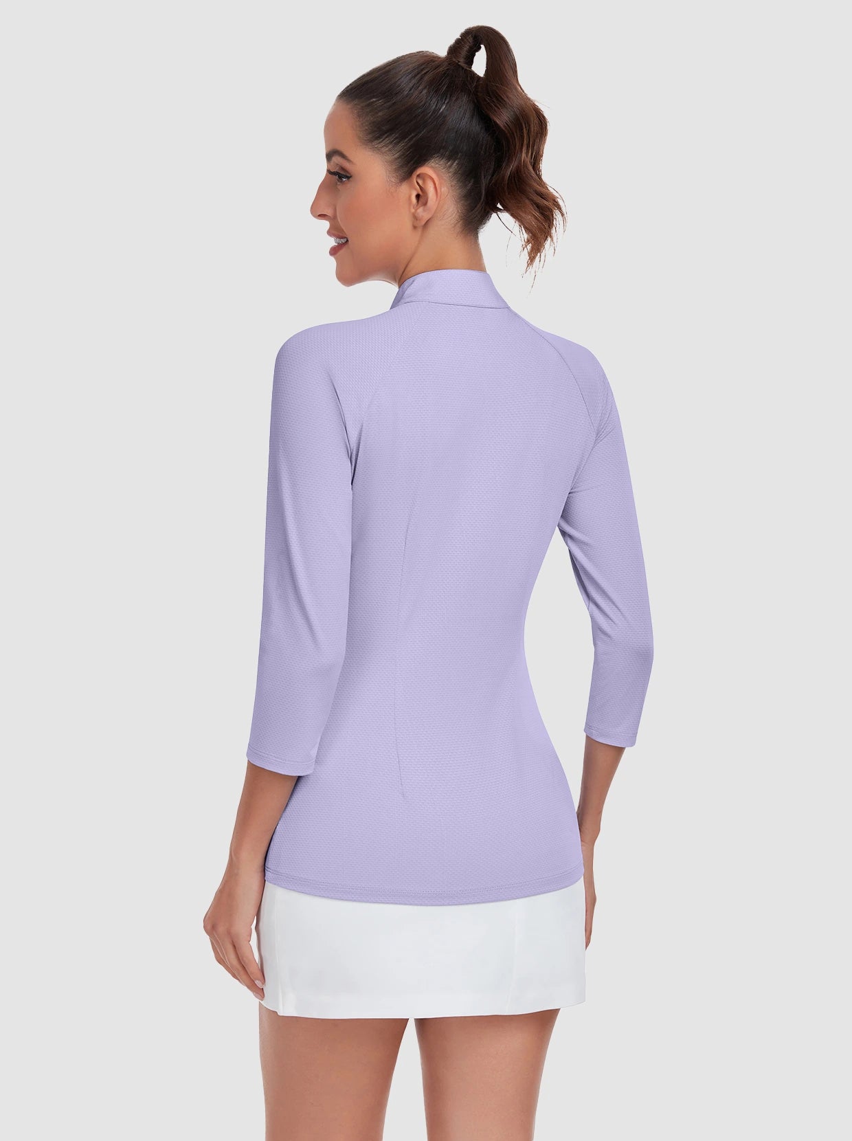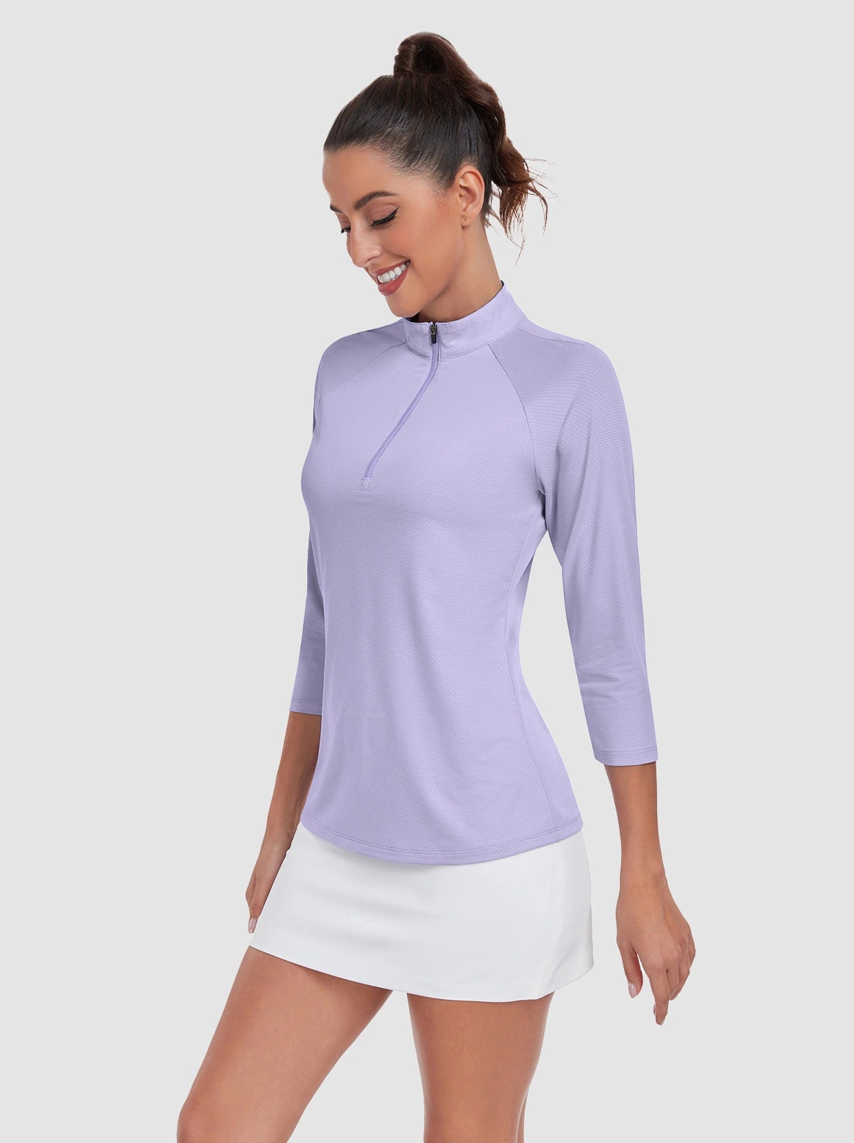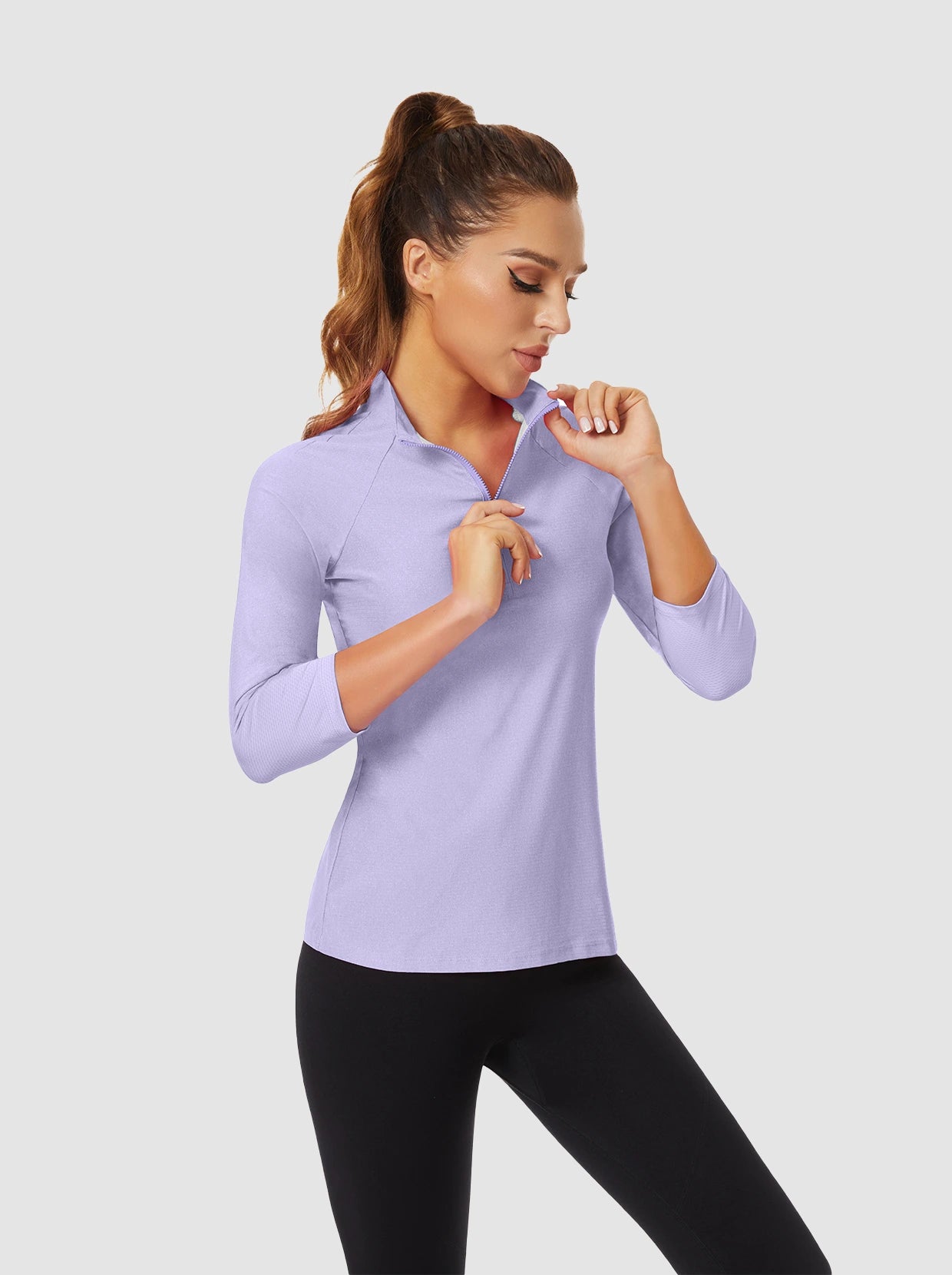 Purple Athletic Shirts Quarter-zip 3/4 Sleeve Shirt for Women