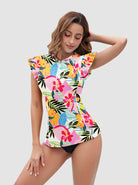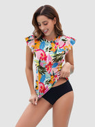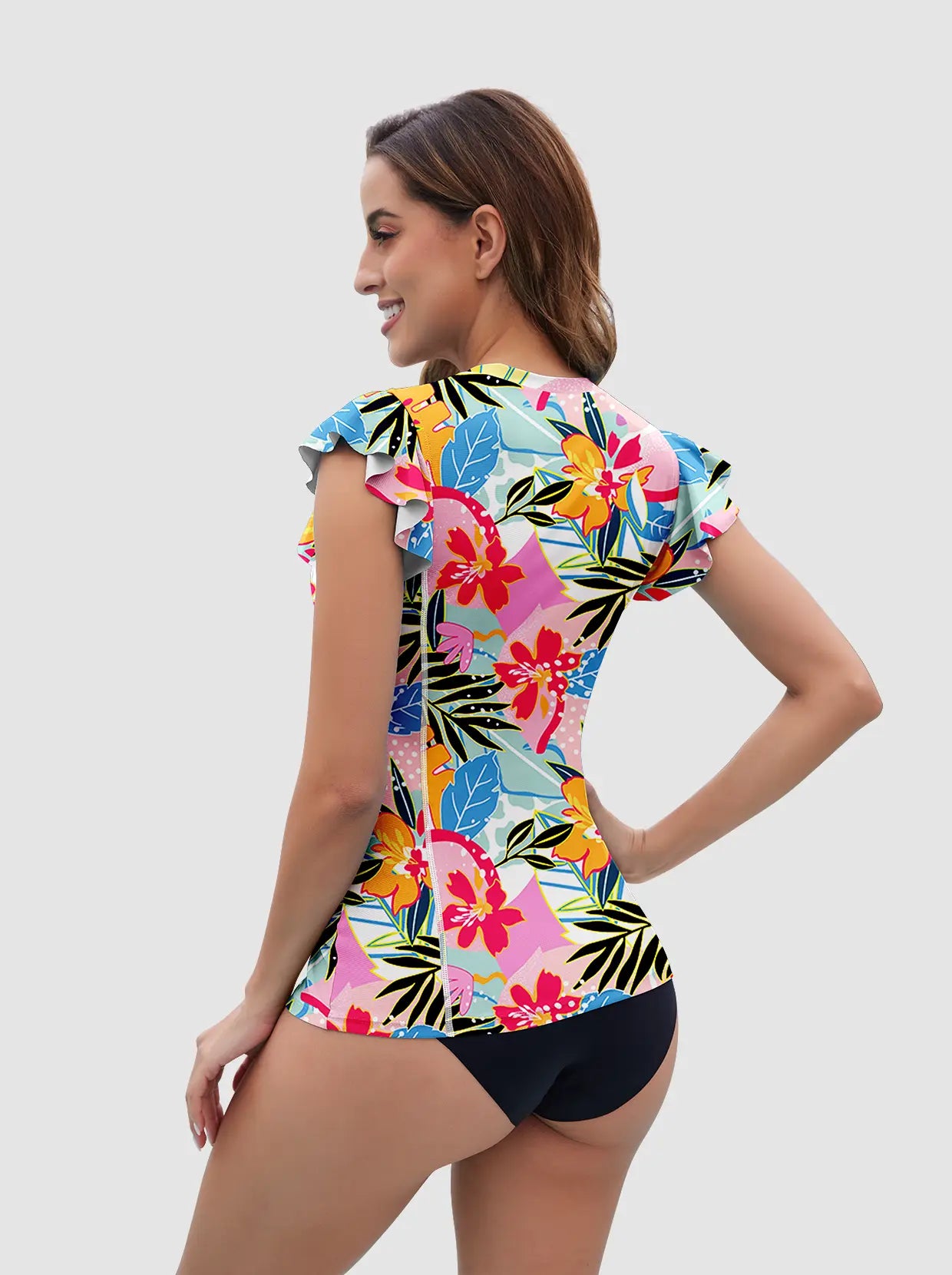 Floral Ruffled Sleeveless Rash Guard with Built-in Bra