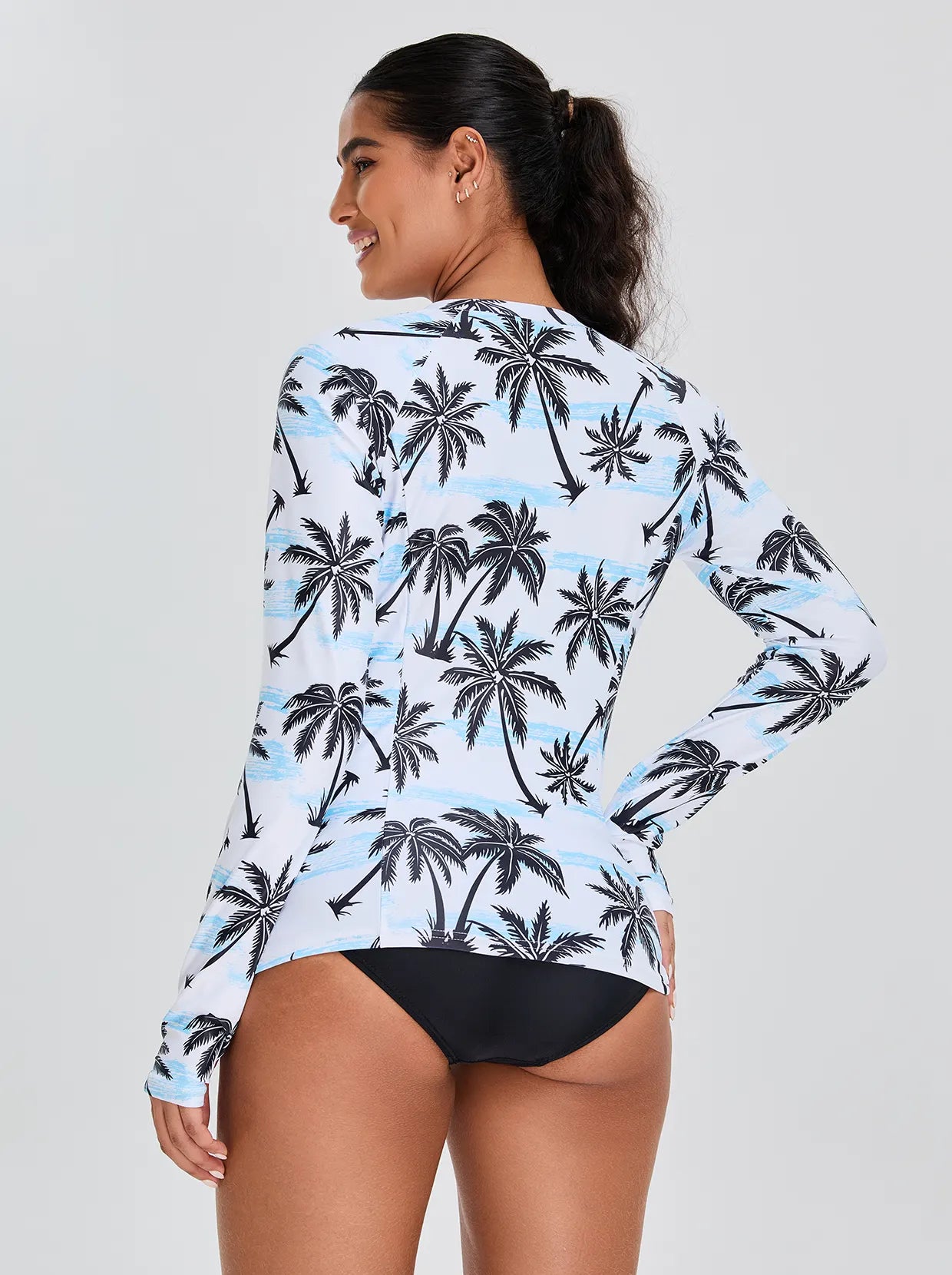 Coconut Tree Quarter-zip Long-sleeve Rash Guard for Ladies
