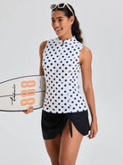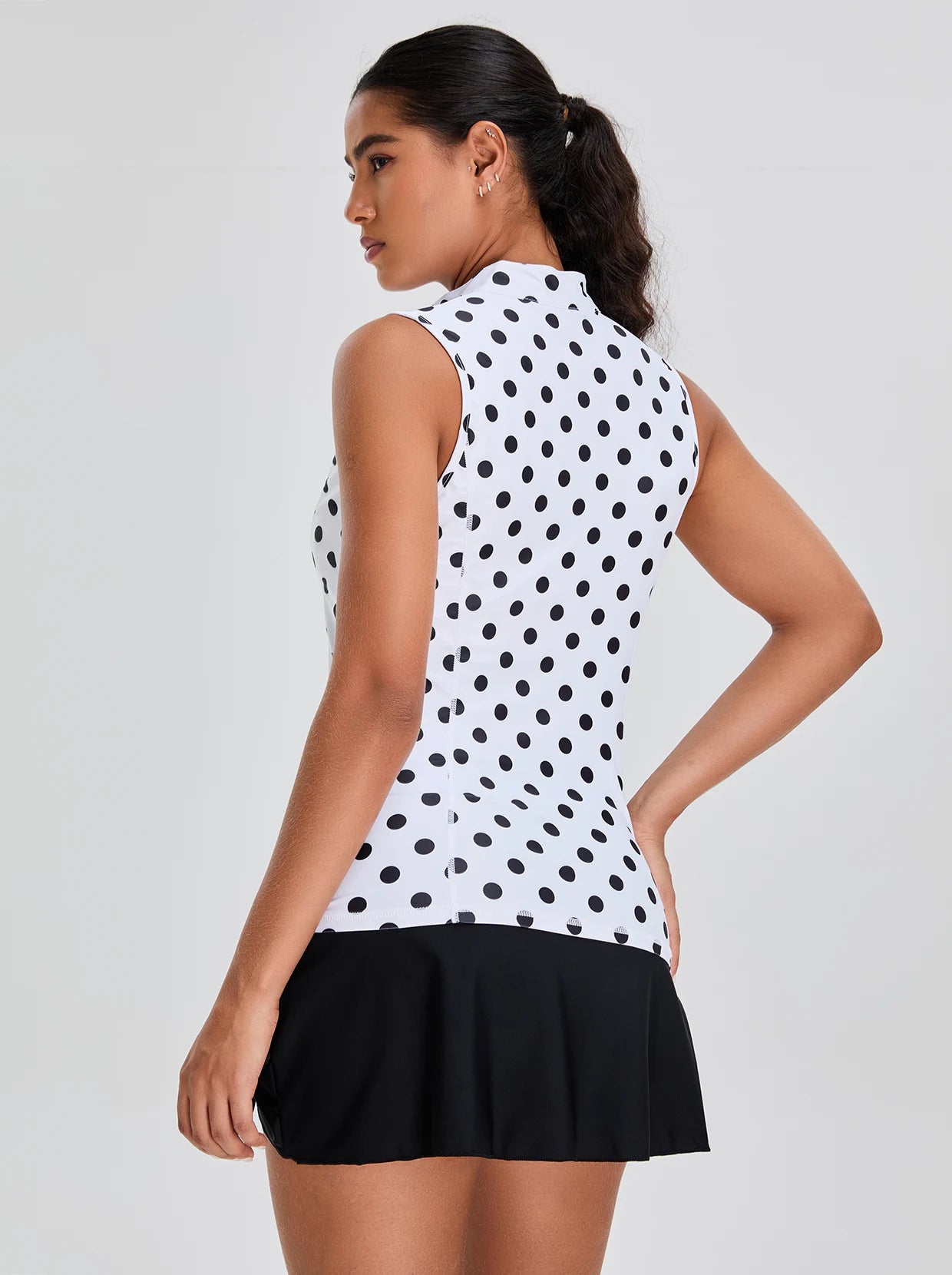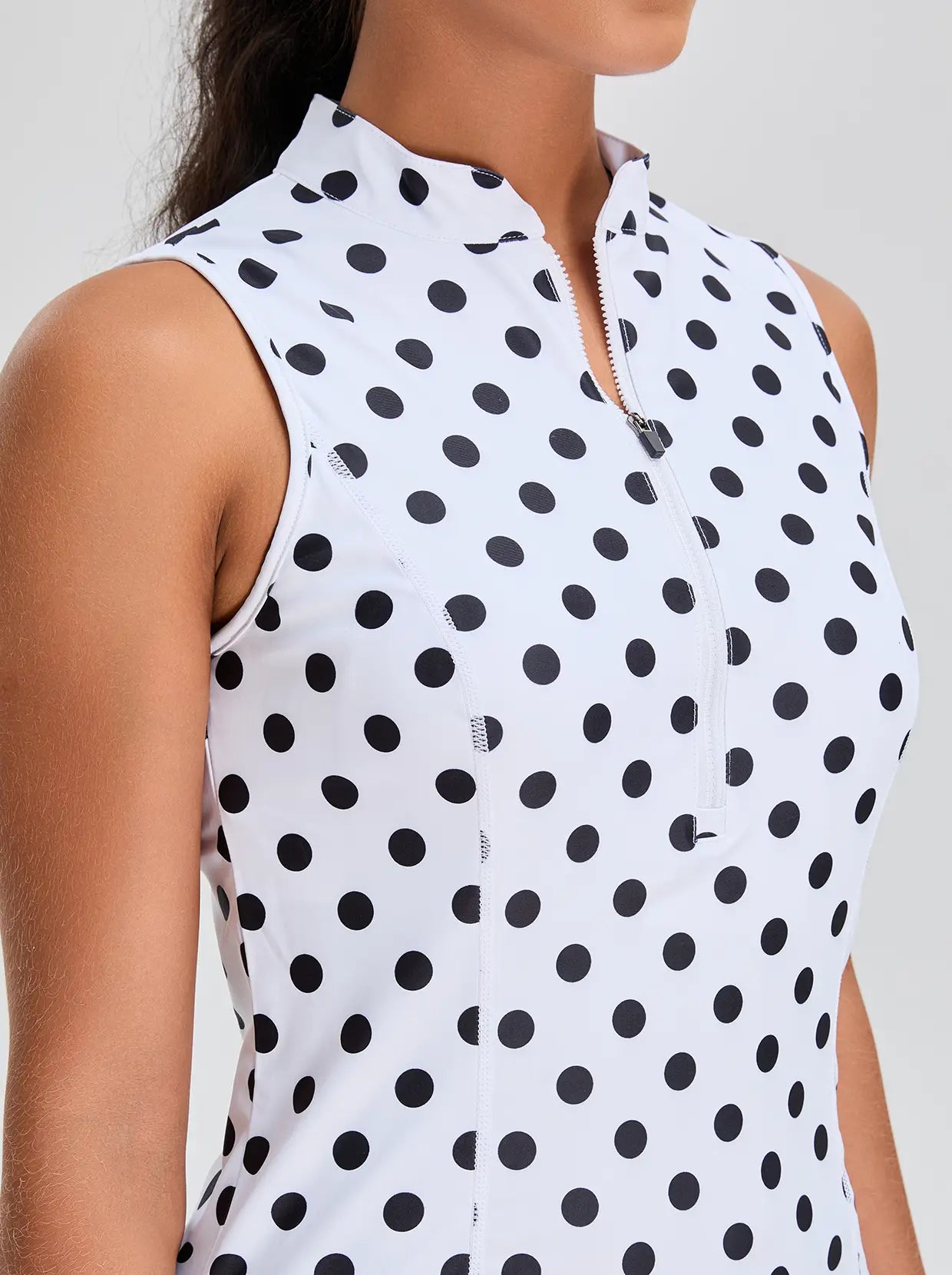 Women's Black Dot Quarter-zip Sleeveless Rash Guard