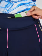 16" Navy Tummy Control Elastic-waistband Pleated Skort with Pockets