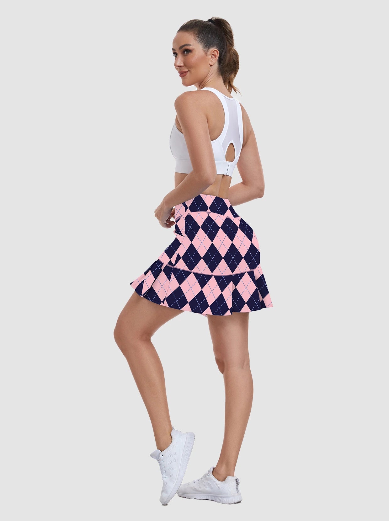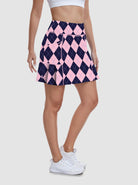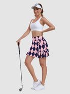 Ladies 17" Pink Checkerboard Pleated Skort with Shorts and Pockets