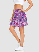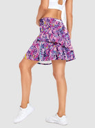 Pink Print 17" Double-Layer Ruffled Skort with Shorts