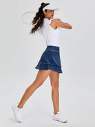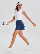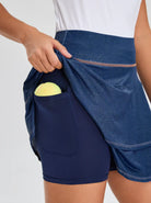 Women's 15"Blue Double-layer Skort with Shorts and Pockets