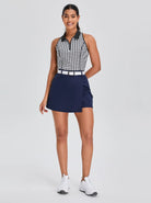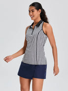 Black Houndstooth Quarter-zip Racerback Sleeveless Polo Shirt For Women