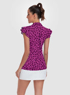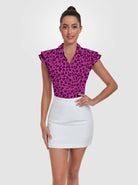 Purple Leopard Ruffled Sleeveless Polo Shirt For Women