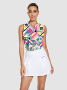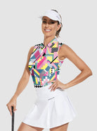 Women's Colorful Geometric Print Quarter-zip Sleeveless Polo Shirt