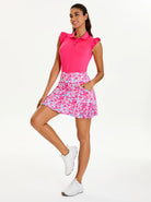 Infuse your workout wardrobe with a splash of color! Our Floral Print Skort offers both radiant style and exceptional performance. It features a beautiful rose-red floral pattern and a flattering pleated silhouette. Stay comfortable and confident with built-in anti-chafing shorts, and keep your essentials secure in the convenient pockets. The quick-dry, moisture-wicking, and stretchy fabric provides incredible flexibility and comfort, making it the perfect choice for golf, tennis, pickleball, or everyday wear.
