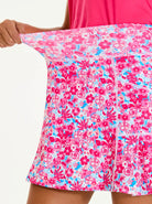 Women's 17" Rose-red Floral Pleated Skort with Pockets