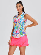 Aquatic Print V-neck Sleeveless Polo Shirt for Women