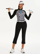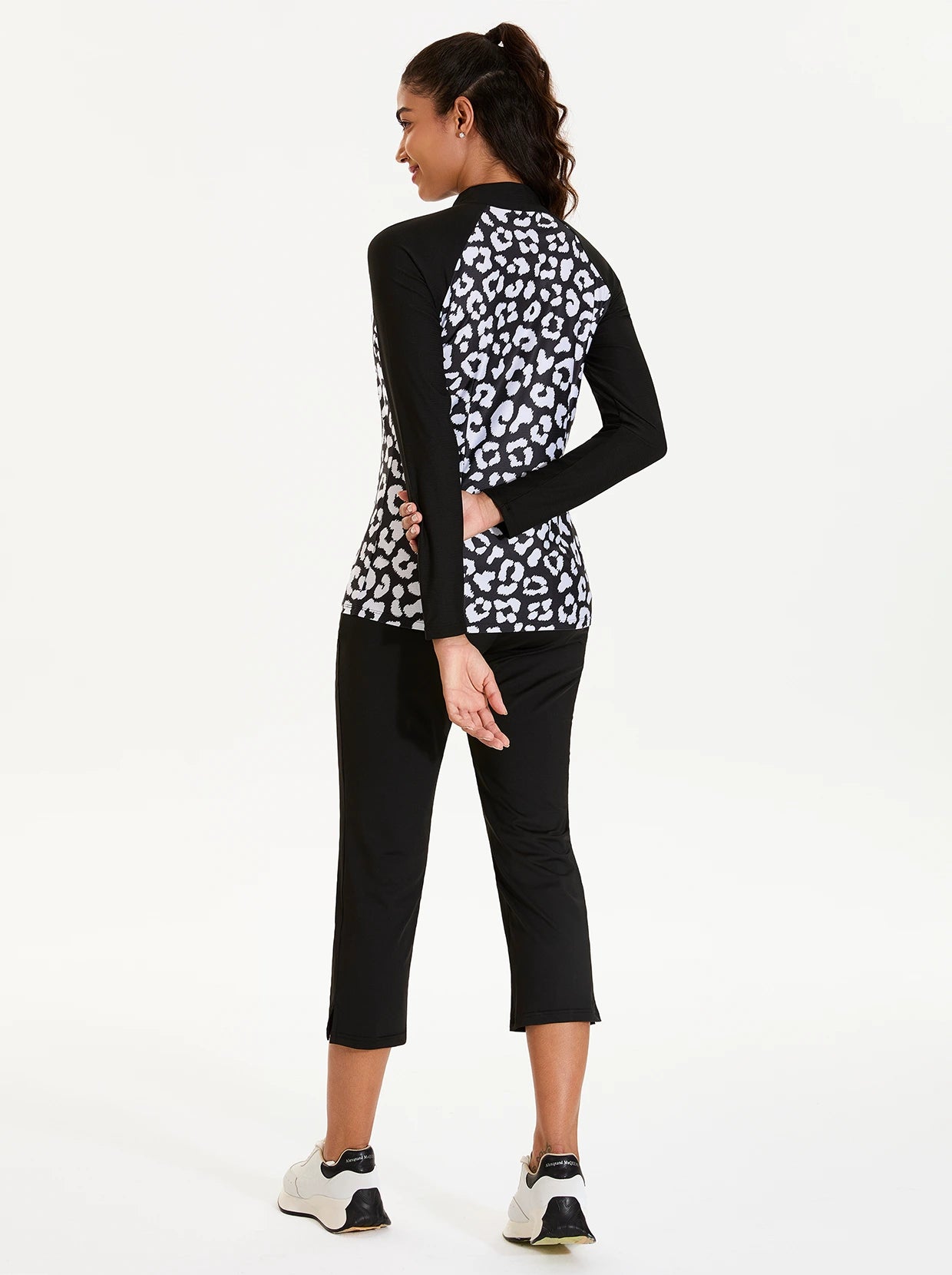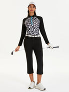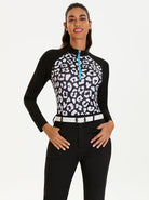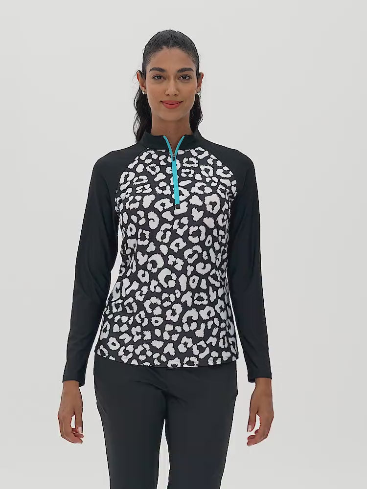 Black Leopard Quarterzip Long-sleeve Shirt for Women