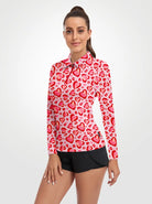 Pink Heart Quarter-zip Long-sleeve Polo Shirt for Women