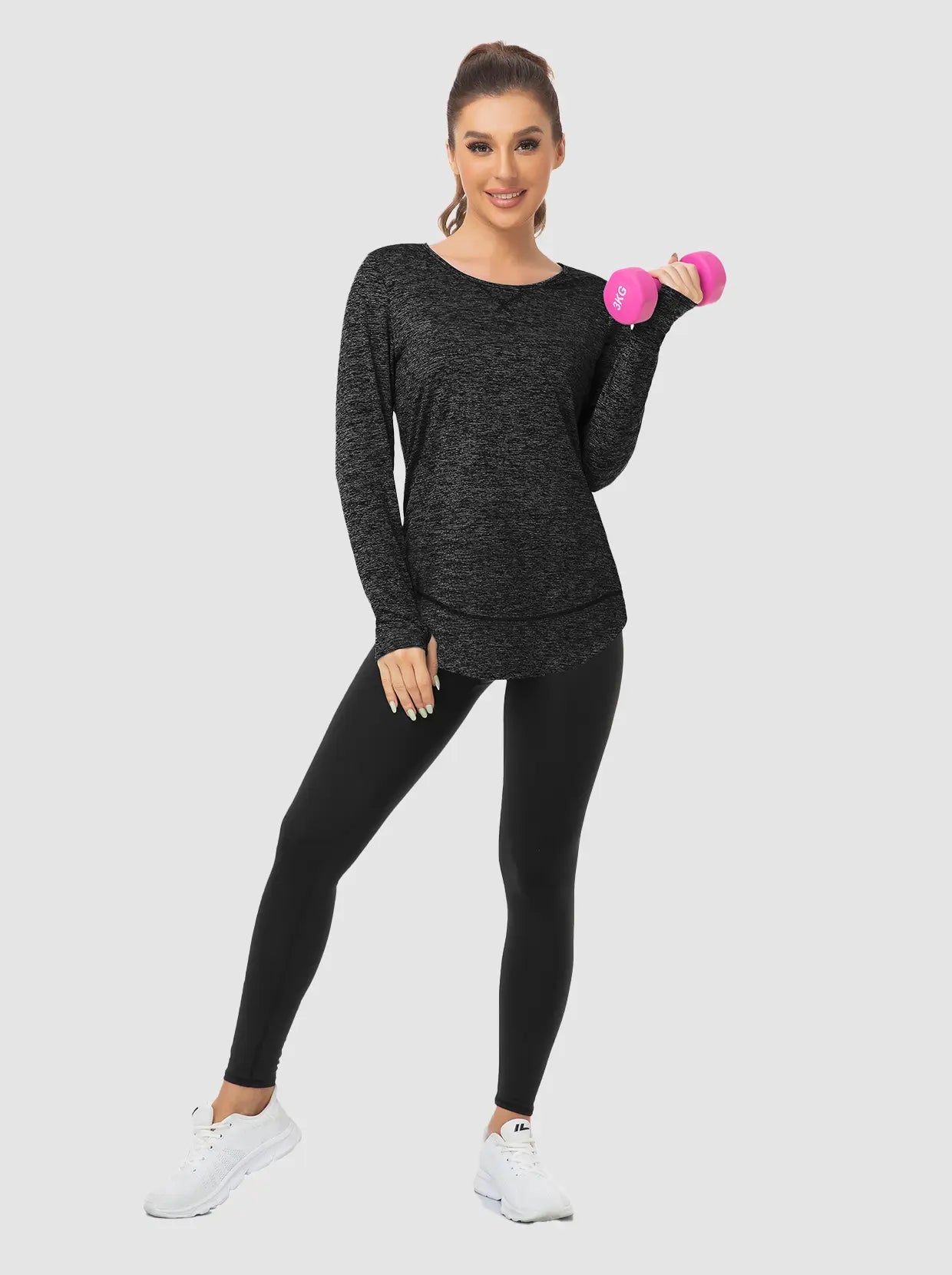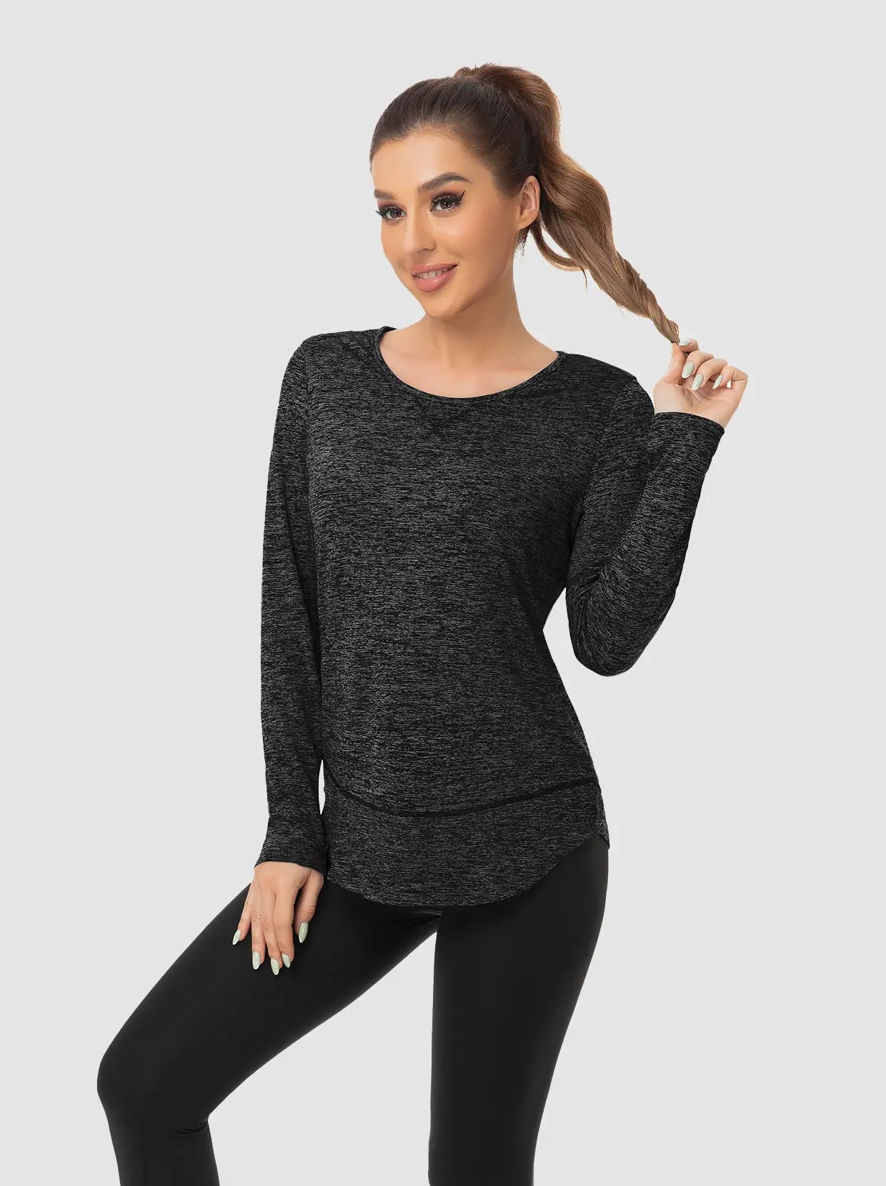 Elevate your workout wardrobe with our stylish Women's Thermal Top. Crafted from soft, quick-drying fabric, this base layer keeps you warm and cool. The 4-way stretch and curved hem offer unrestricted movement, while thumbholes keep the sleeve in place. Perfect for layering or wearing alone