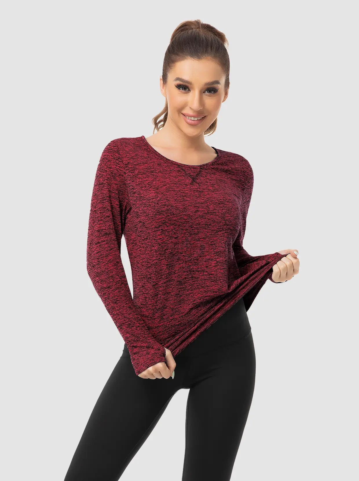 Ladies Pullover Long-sleeve Thermal Top with thumbholes