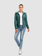 Lake Green Stand-collar Long-sleeve Fleece Jacket For Women