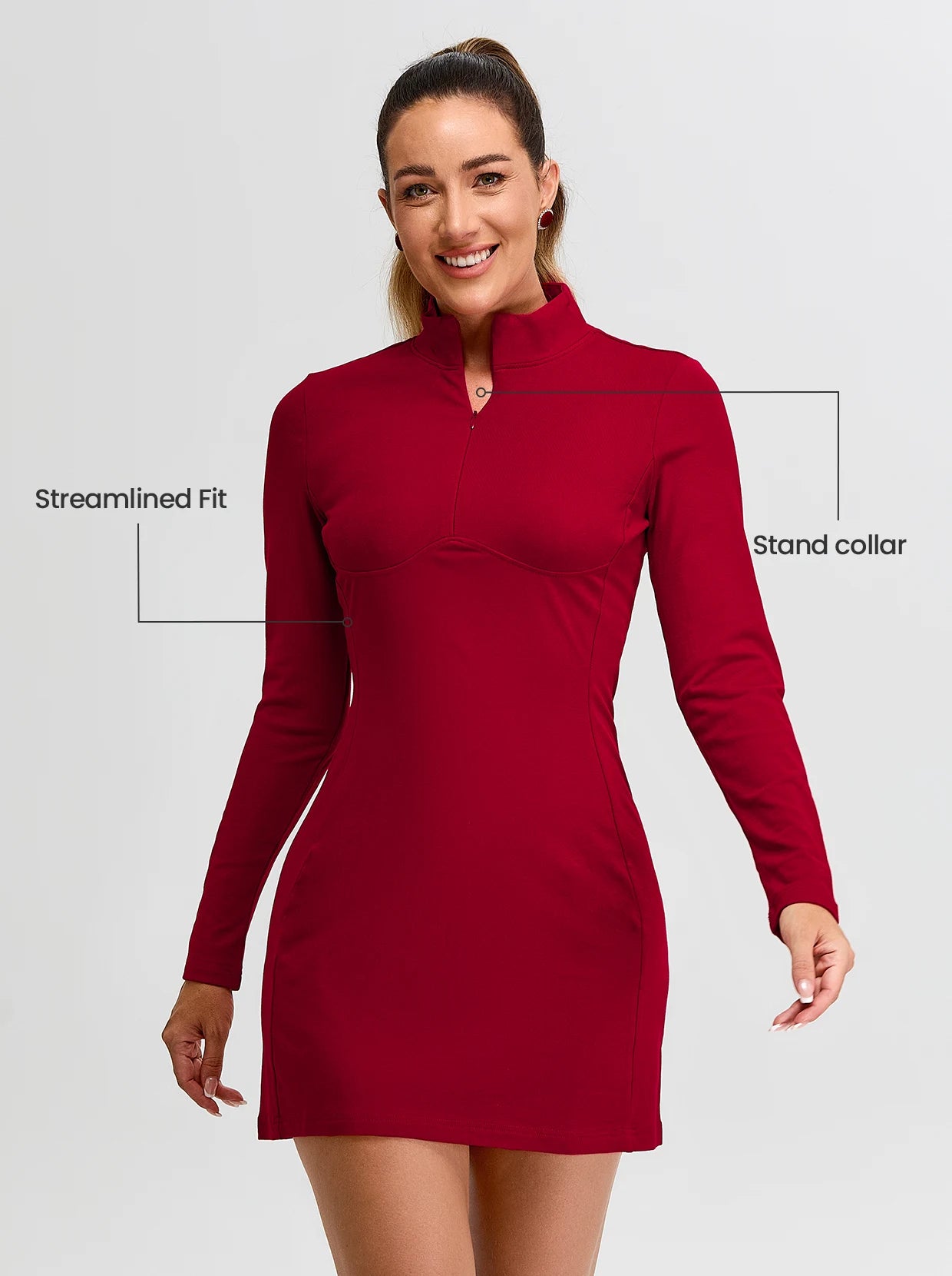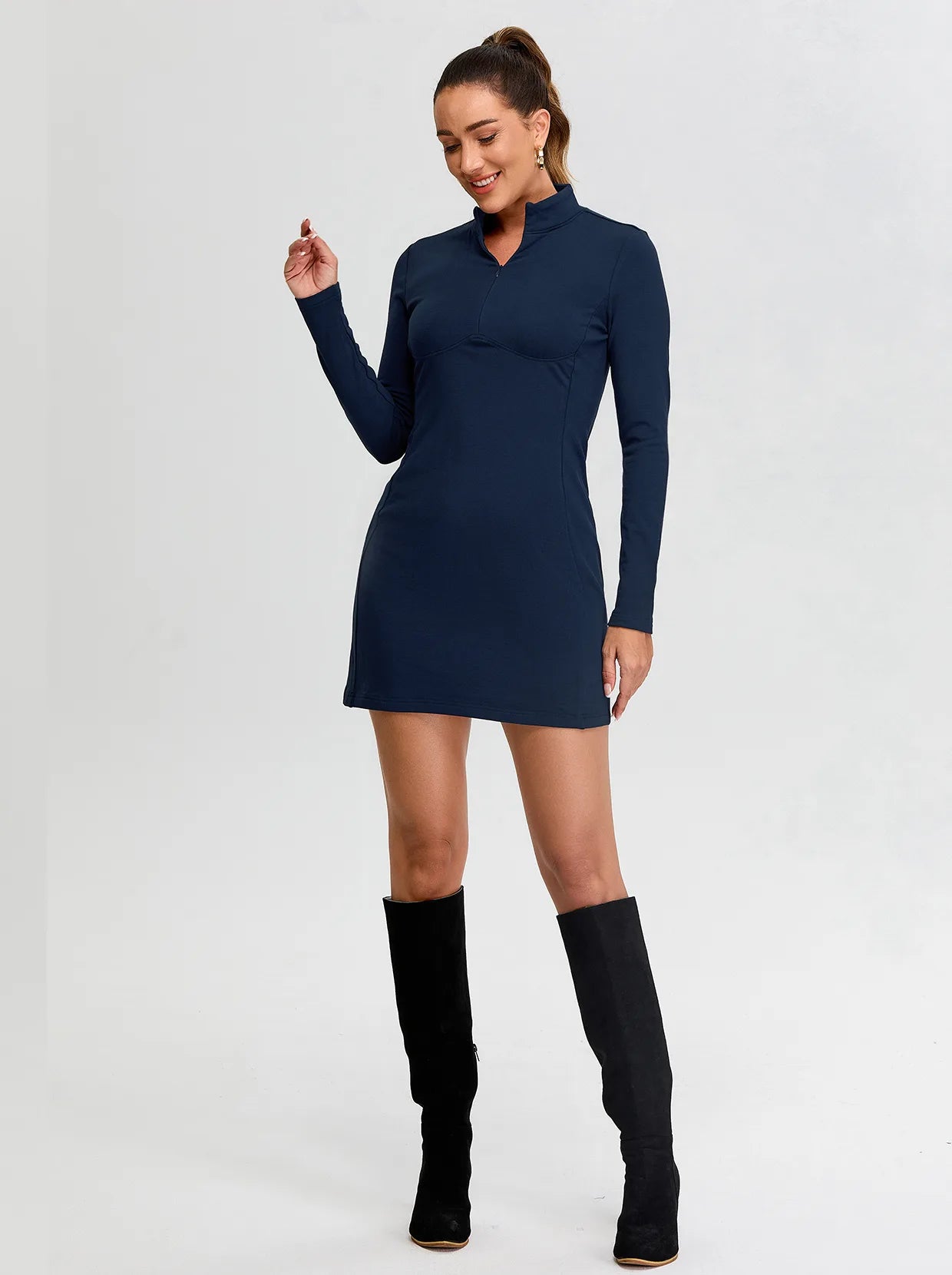 Girls Quarter-zip Long-sleeve Fleece Dresses with Pockets