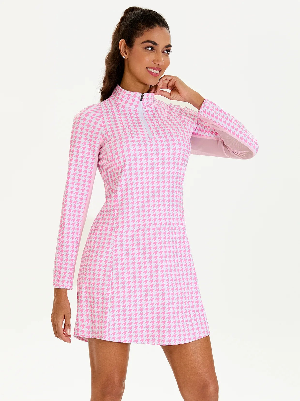 Breathable 34.5" Long-sleeve Golf Dresses with Shorts and Pockets