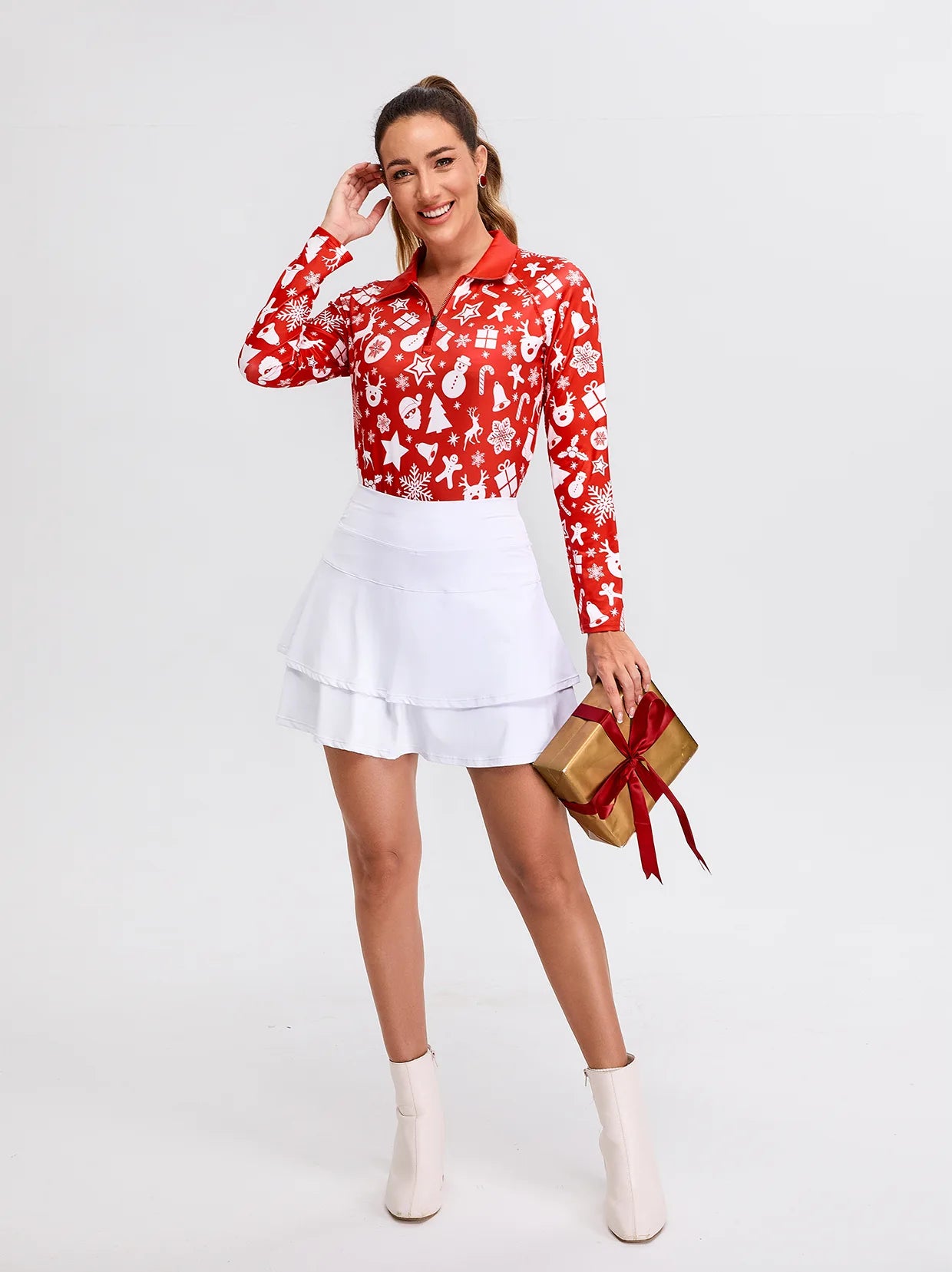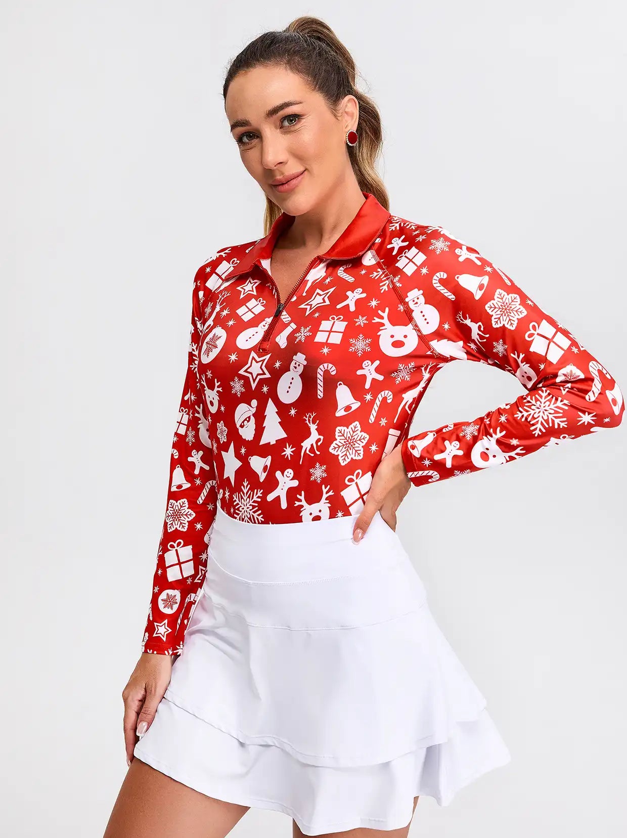 38 reviewsWhite Christmas Pattern Quarter-zip Long-sleeve Shirt