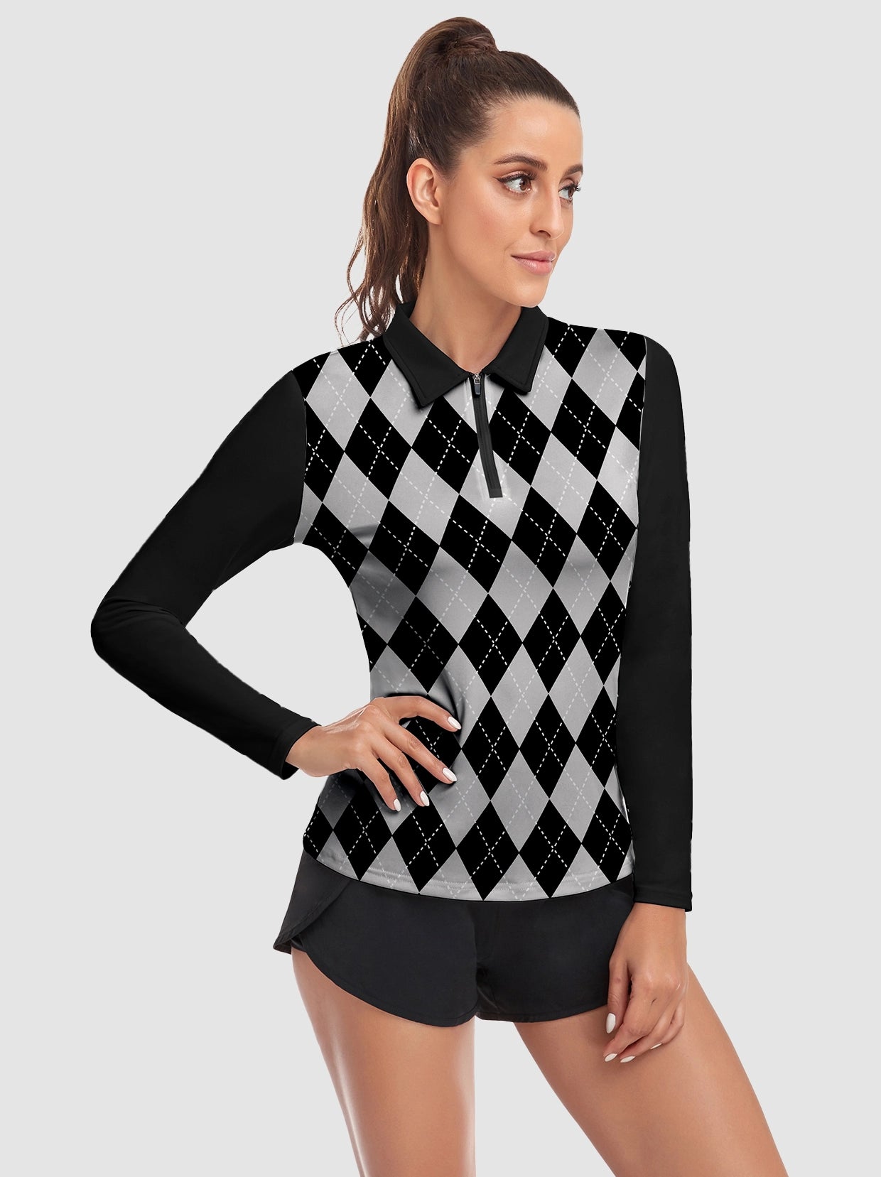 34 reviewsPink And White Checkerboard Sleeveless Quarter-Zip Golf Polo For Women