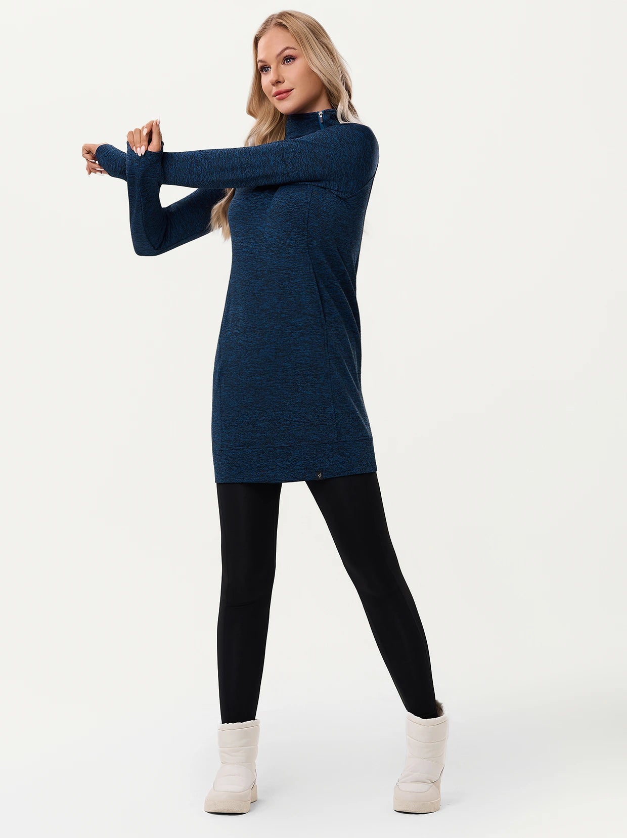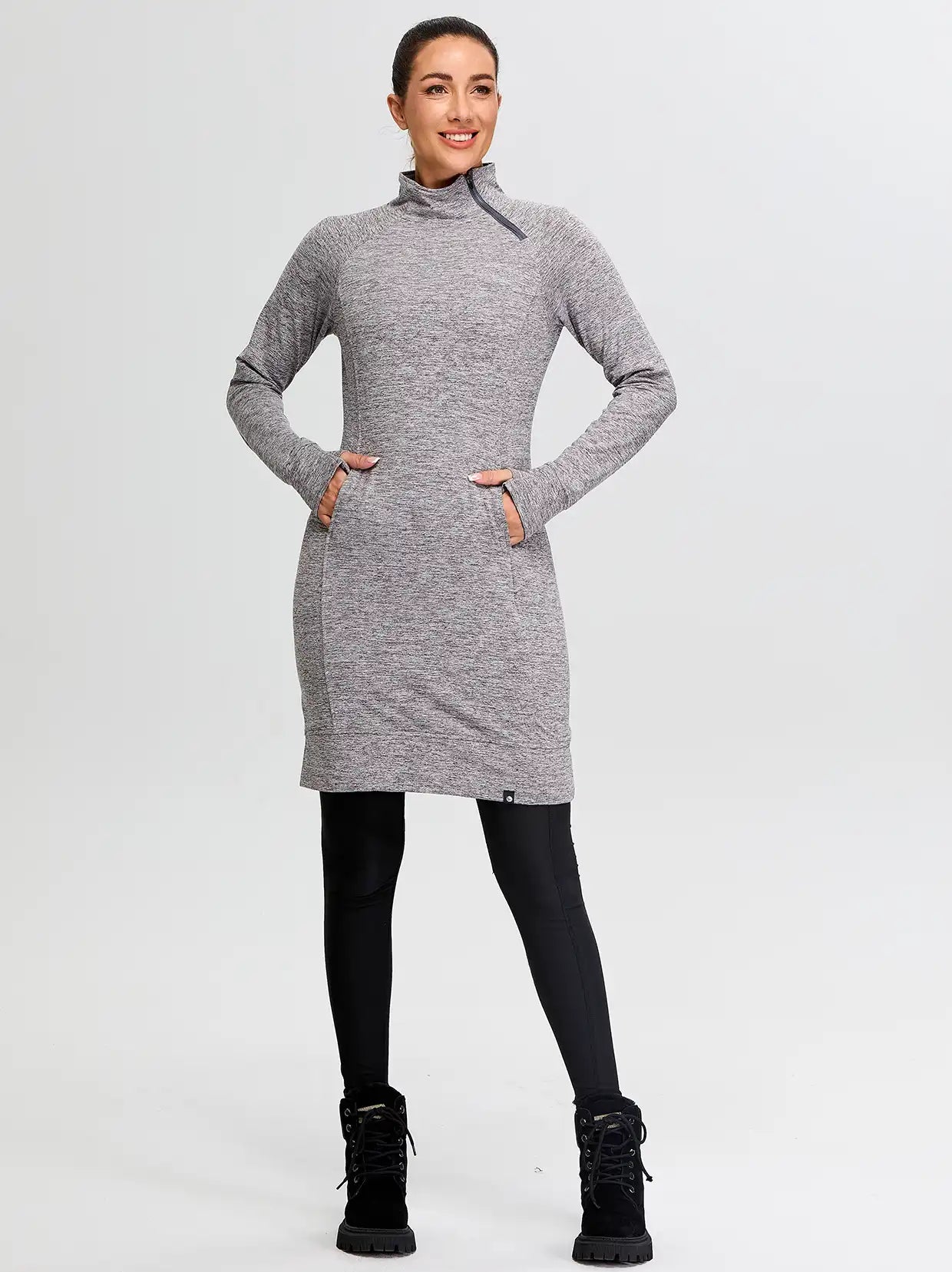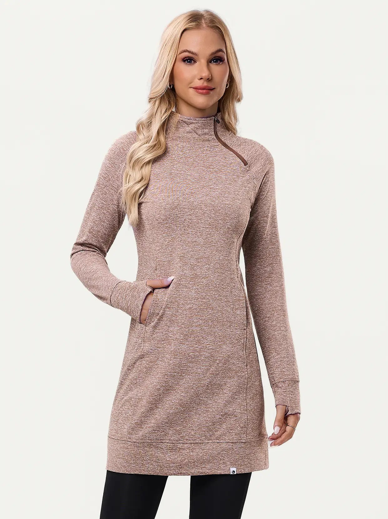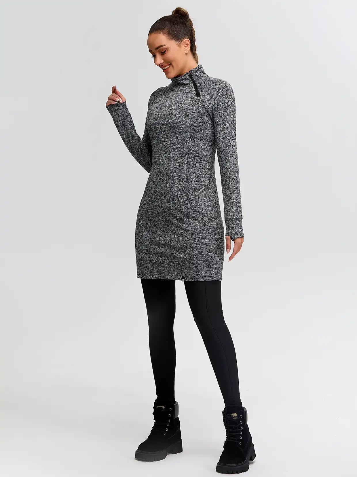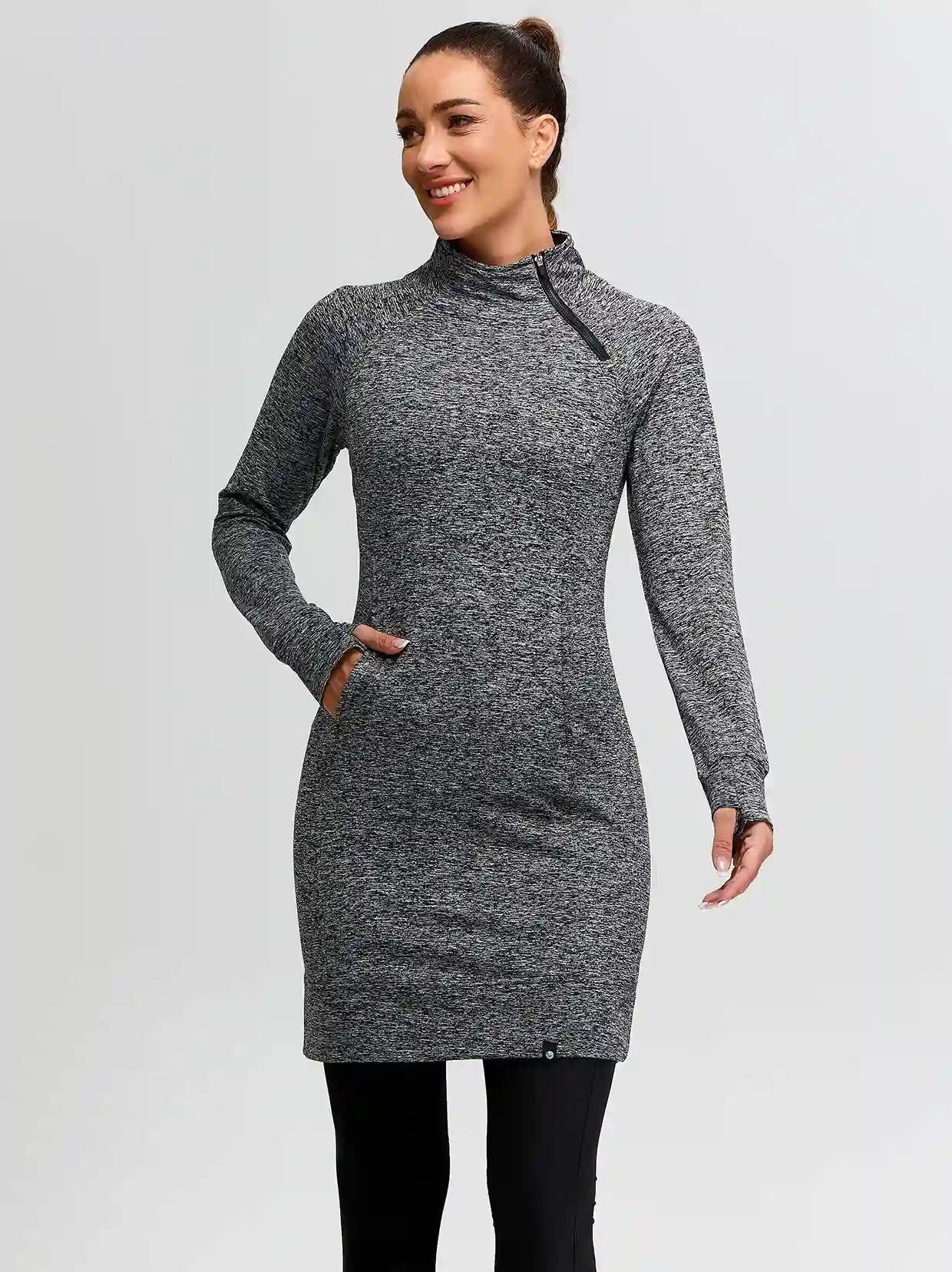 Side-zip 35" Mock Neck Long-sleeve Fleece Dresses